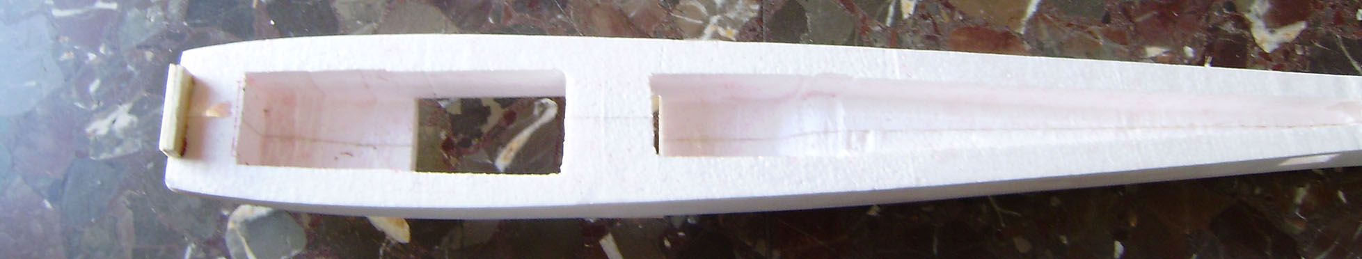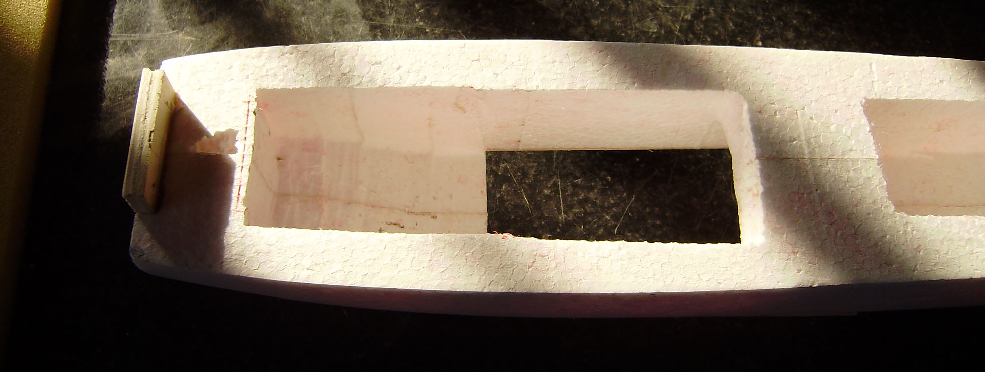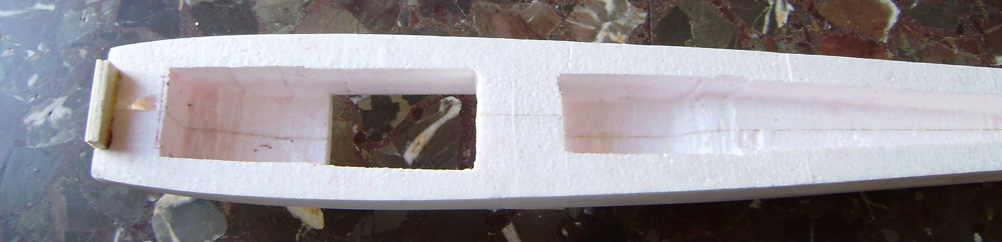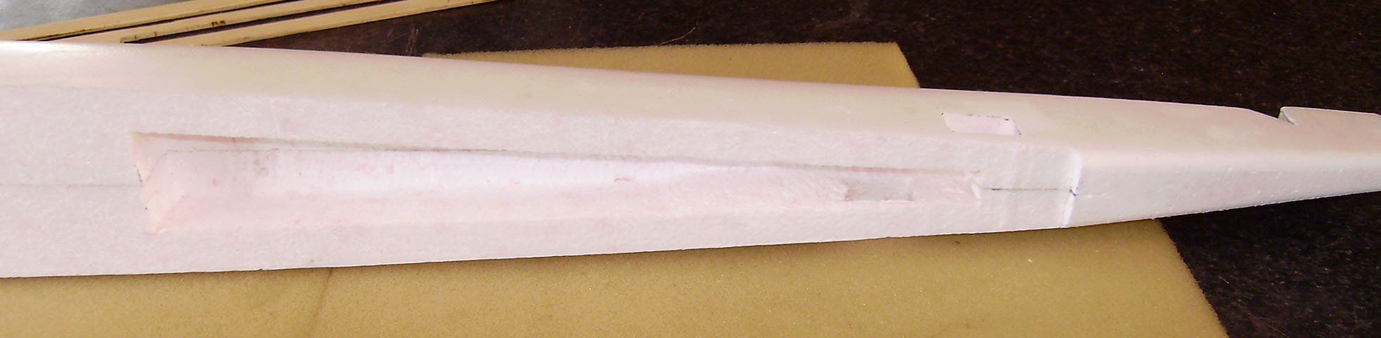 Ahuecado de los servos y del cuerpo para eliminar peso y servir de guia para los cables de los servos.