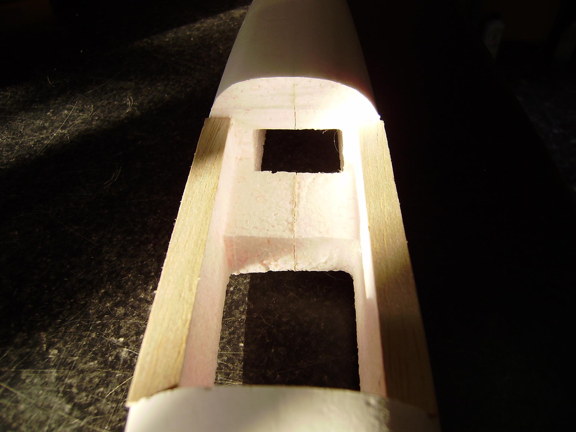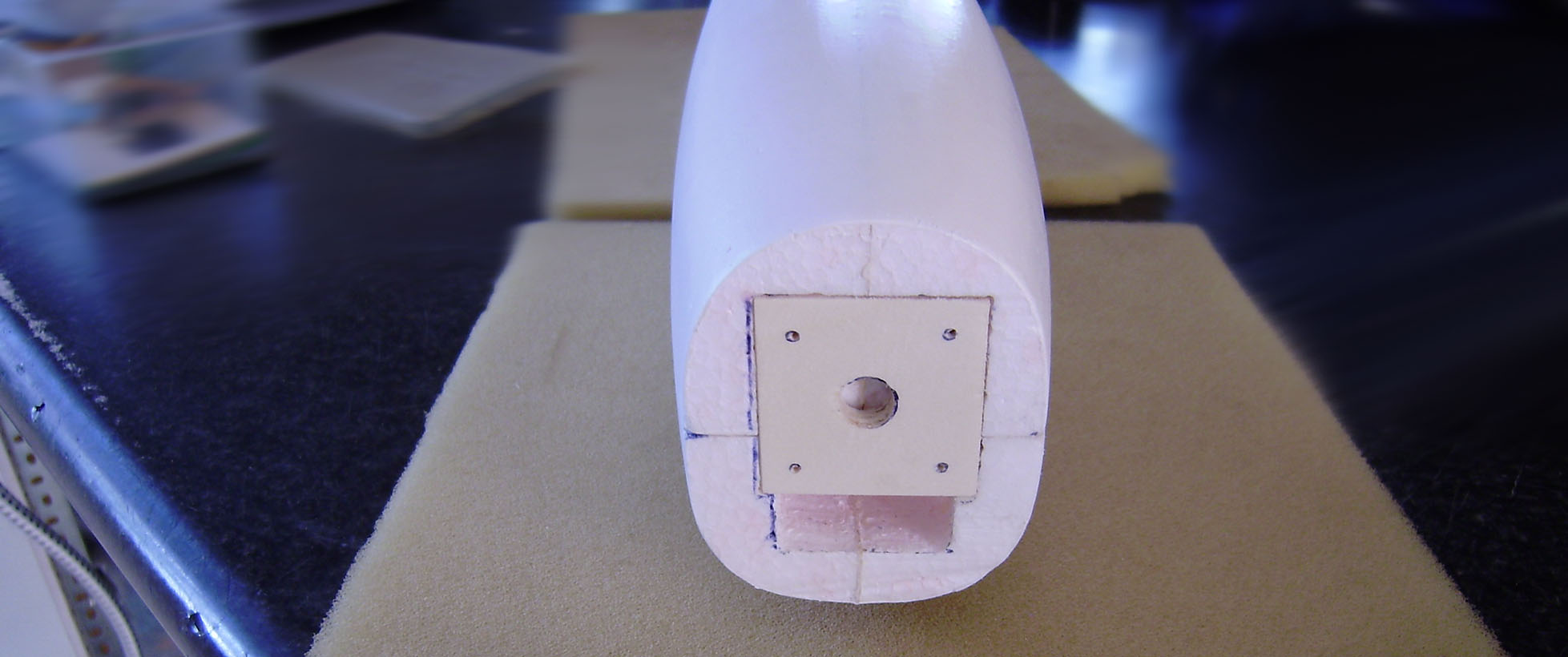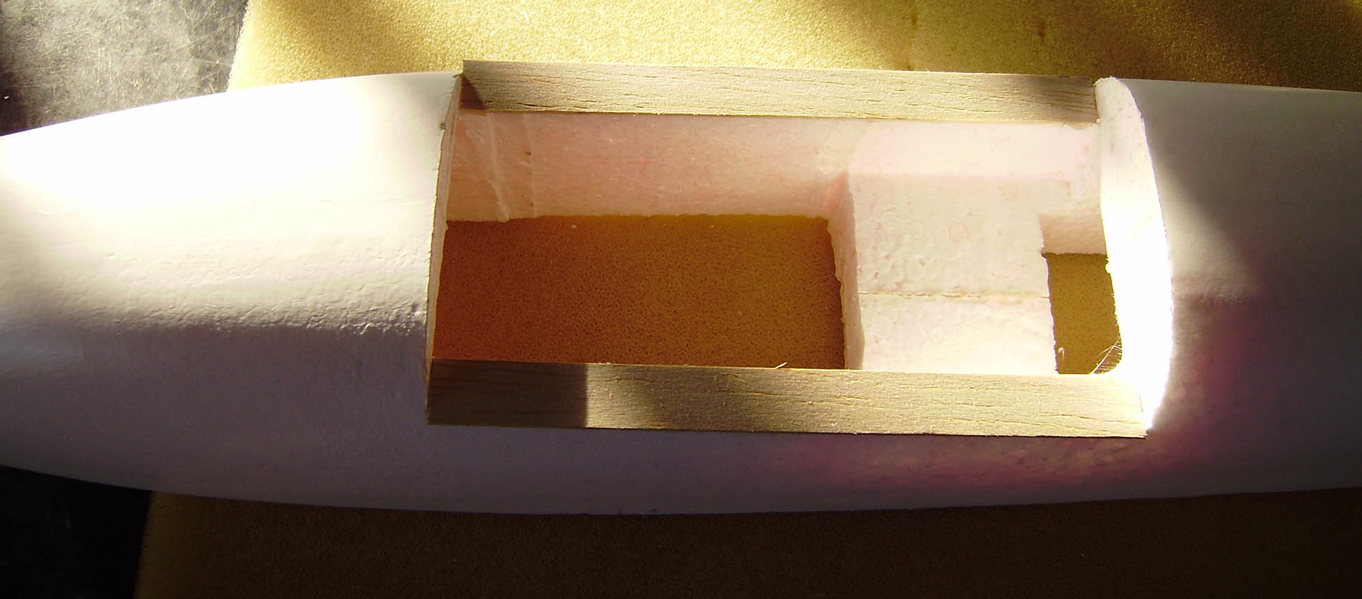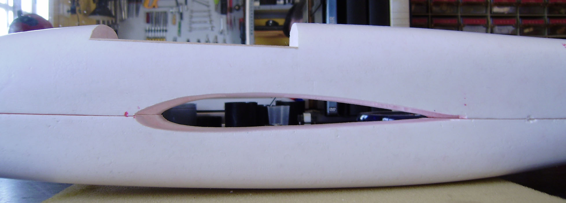 Ahuecado de los servos y del cuerpo para eliminar peso y servir de guia para los cables de los servos.