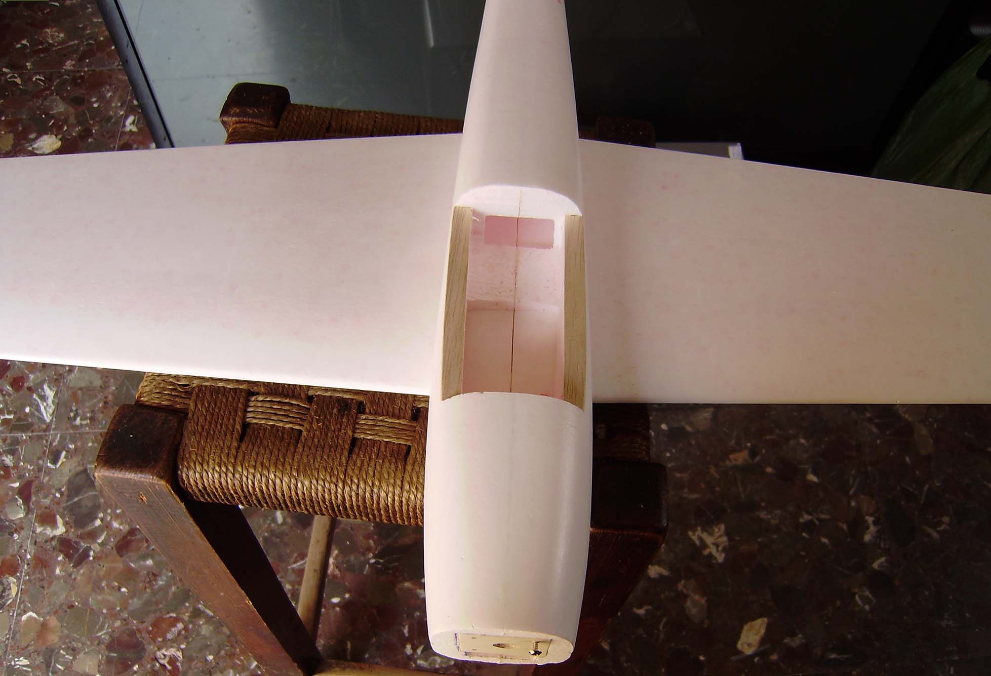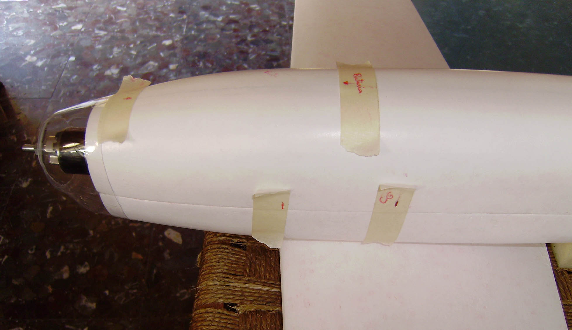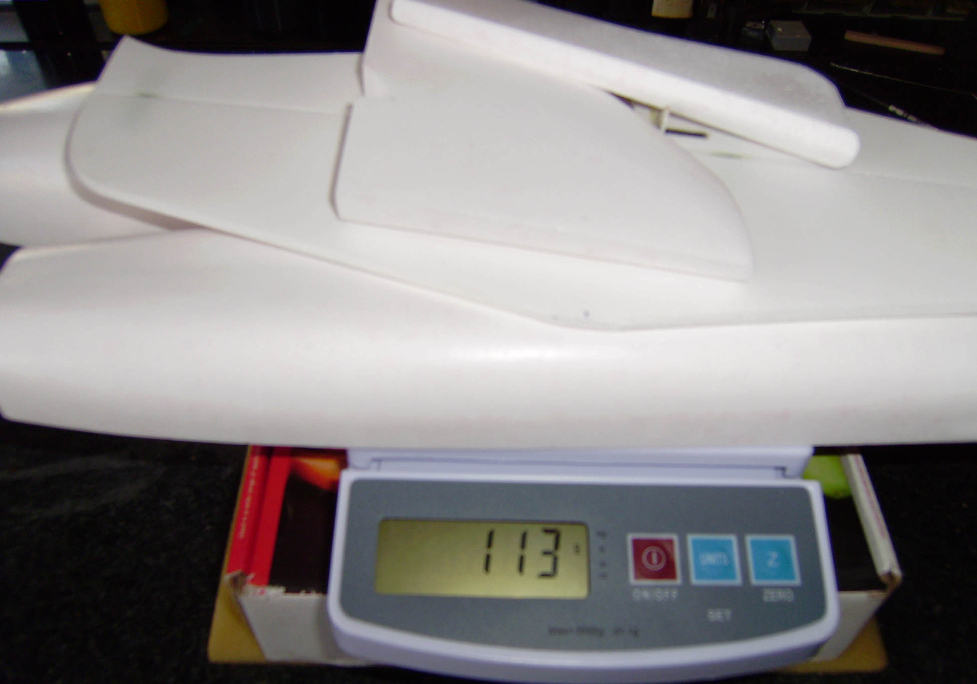El peso de todo el fuse,cola y profundidad va por 113 Gr.Aunque vamos bien de peso,hay que ponerlo un poco mas a dieta.