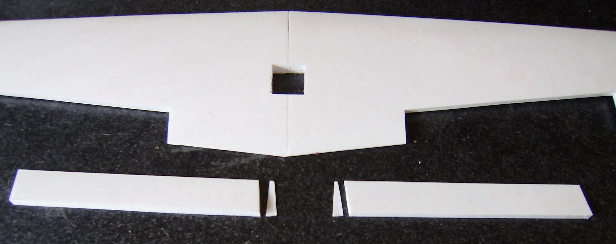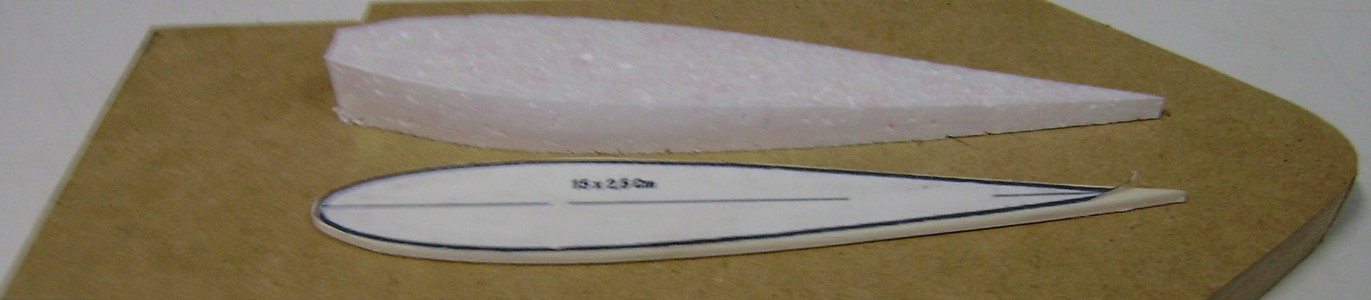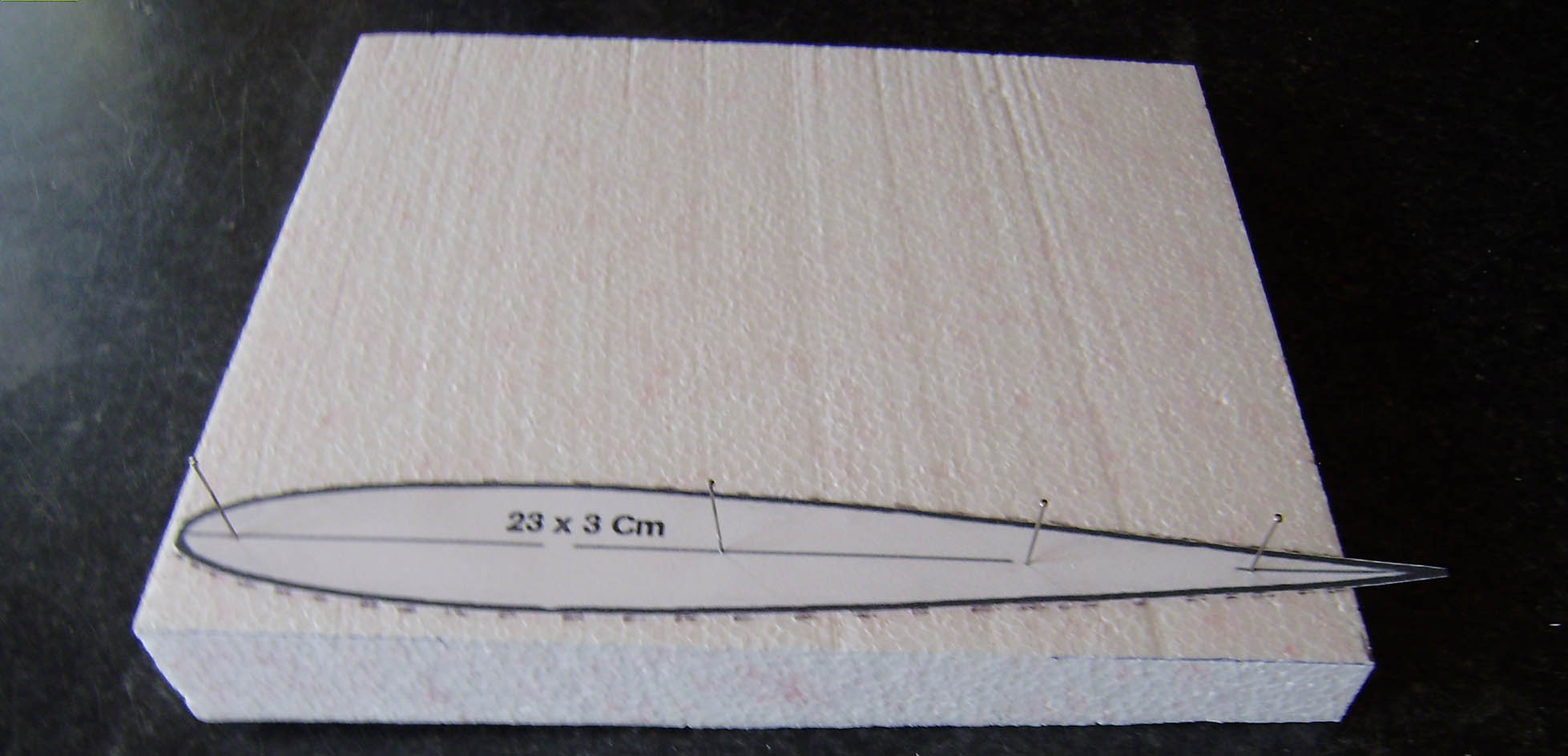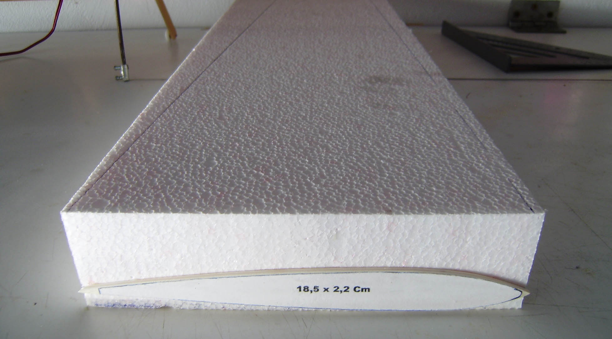 Solo se necesita un trozo de corcho de 5 Cm de grosor de 51 x 19 Cm.De aqui salen las dos semi-alas.