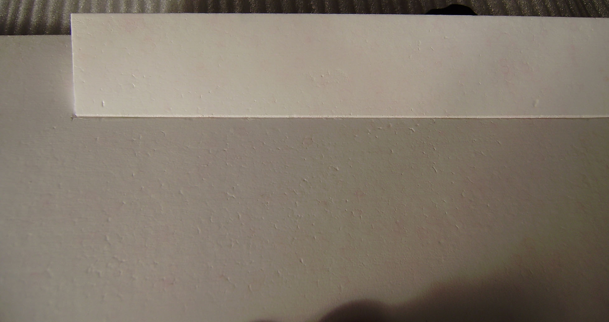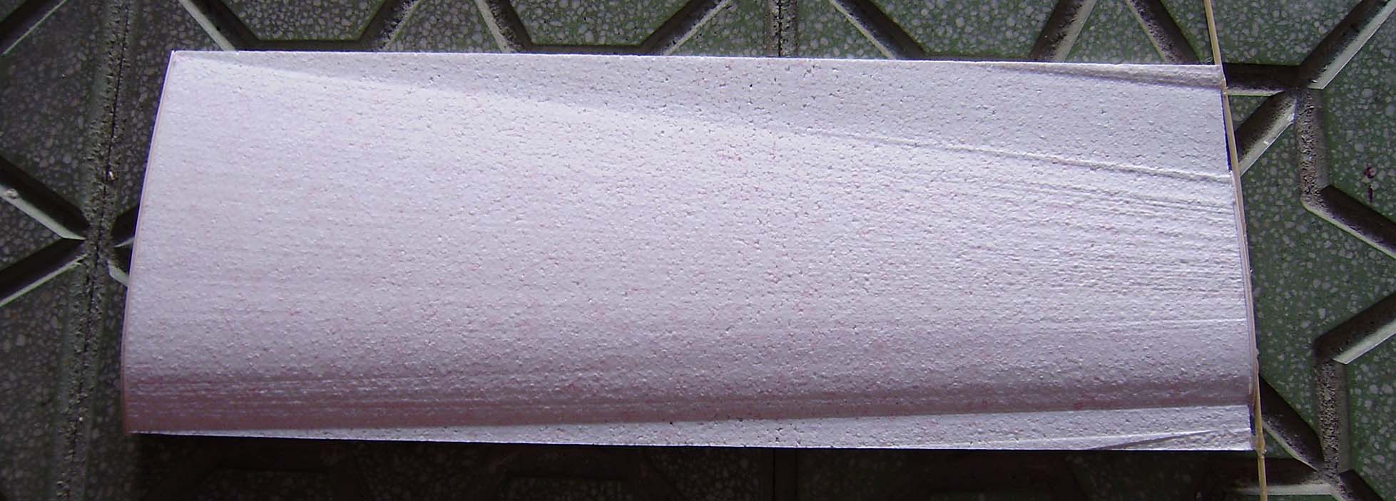 Y luego tambien esta el que estoy utilizando en este momento que es blanco y tiene como unas manchitas rosas.Este tambien es muy duro,aunque un poco mas pesado que el verde o el azul e incluso que el rosa.Este lo encontre en una ferreteria y mide 2 m y algo x 60 Cm de ancho.