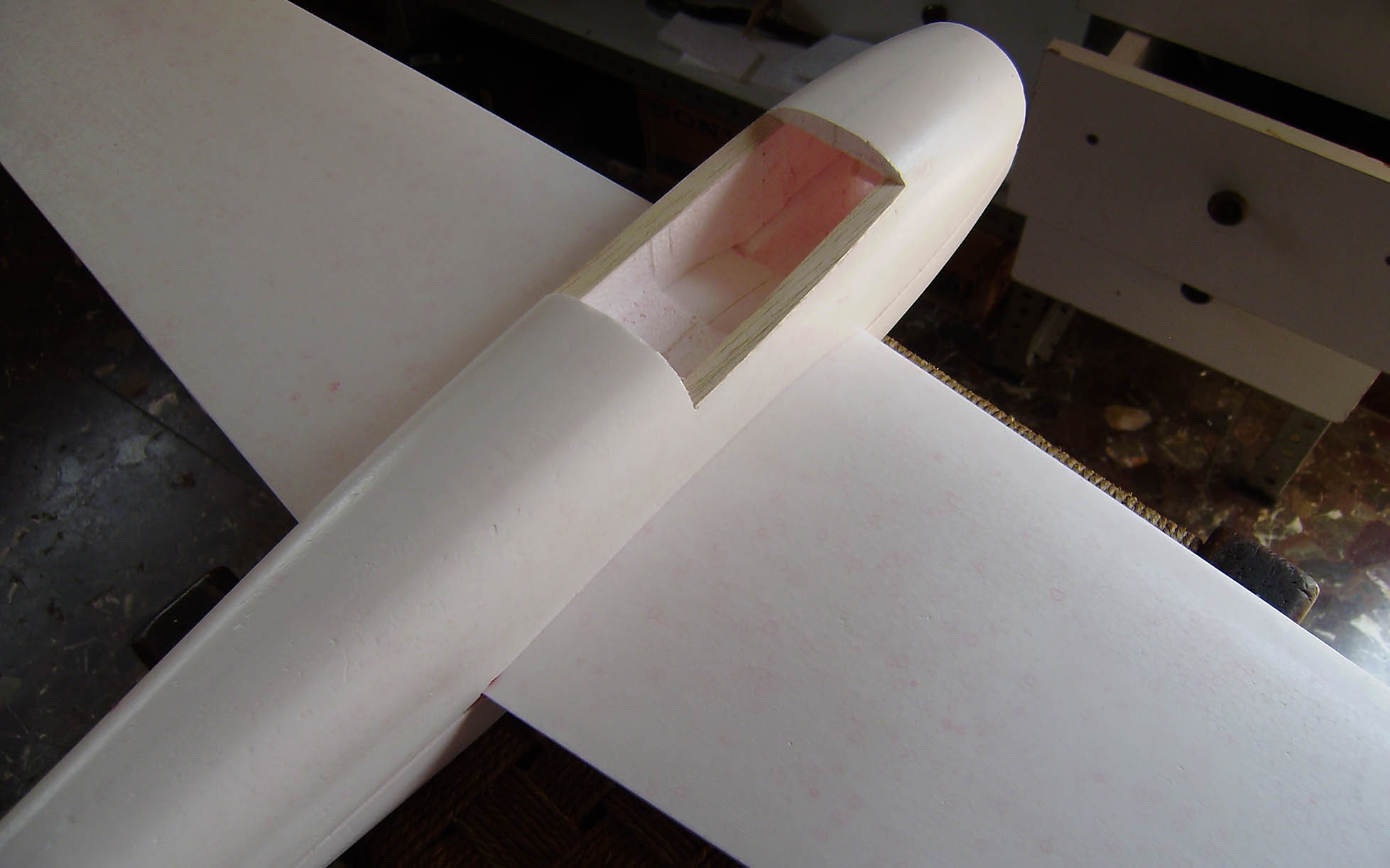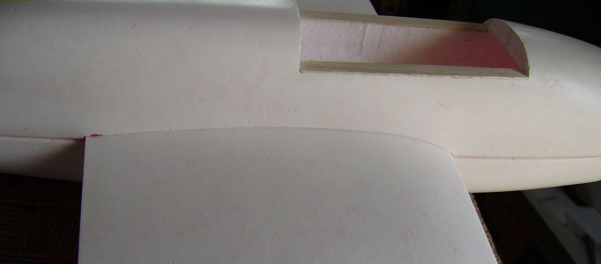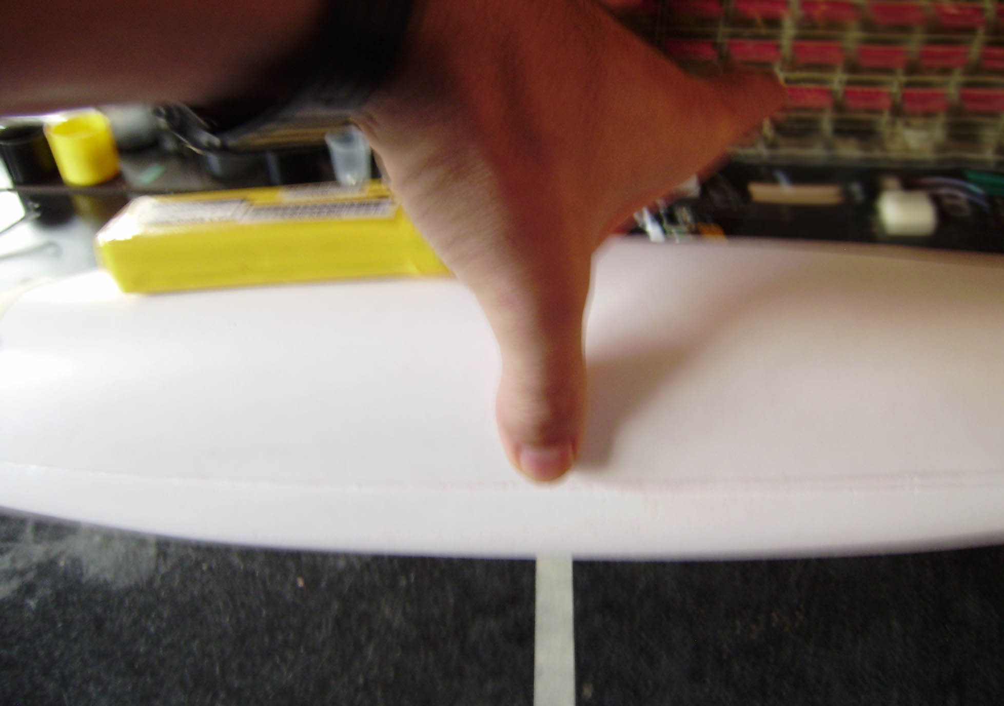 Todo el fuse,profundidad y cola ya estan bien lijados y con dos finas manos de pintura blanca.