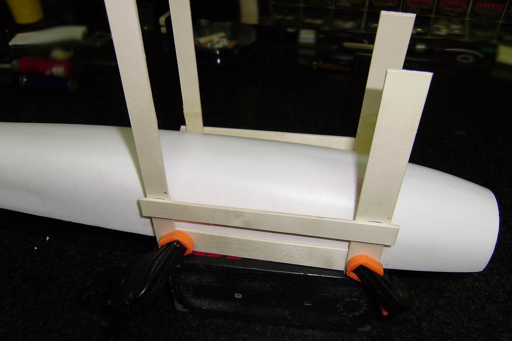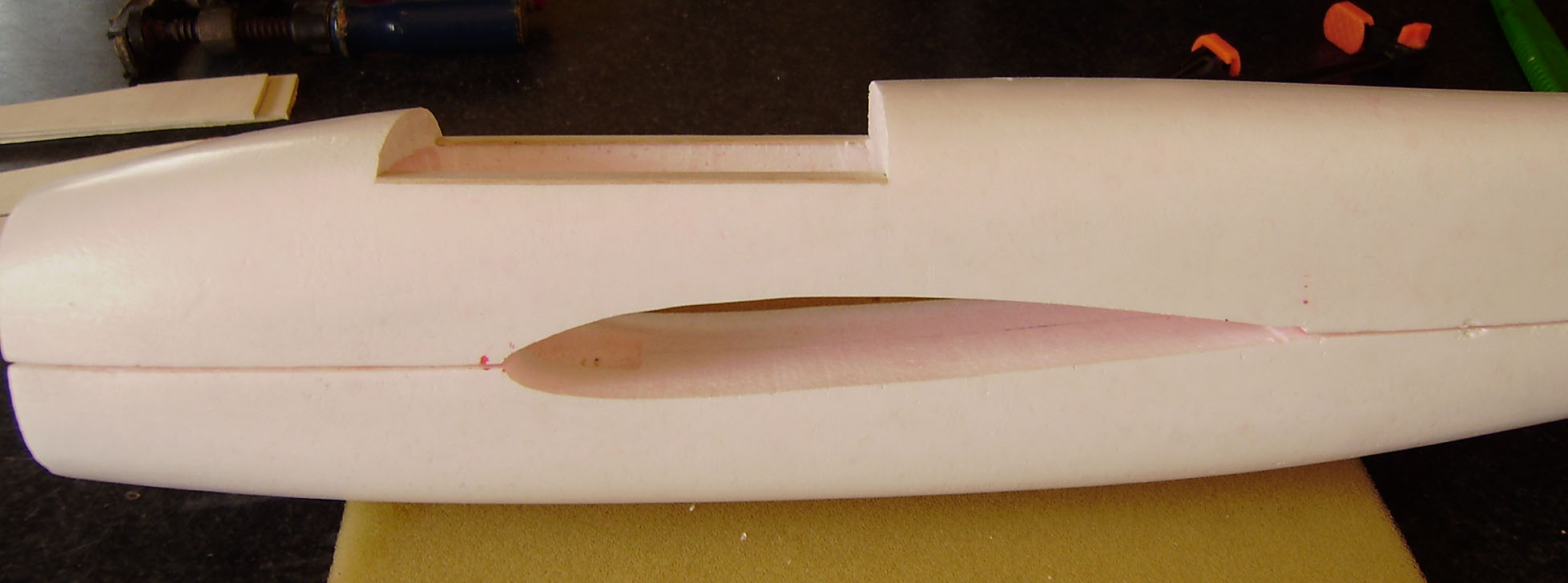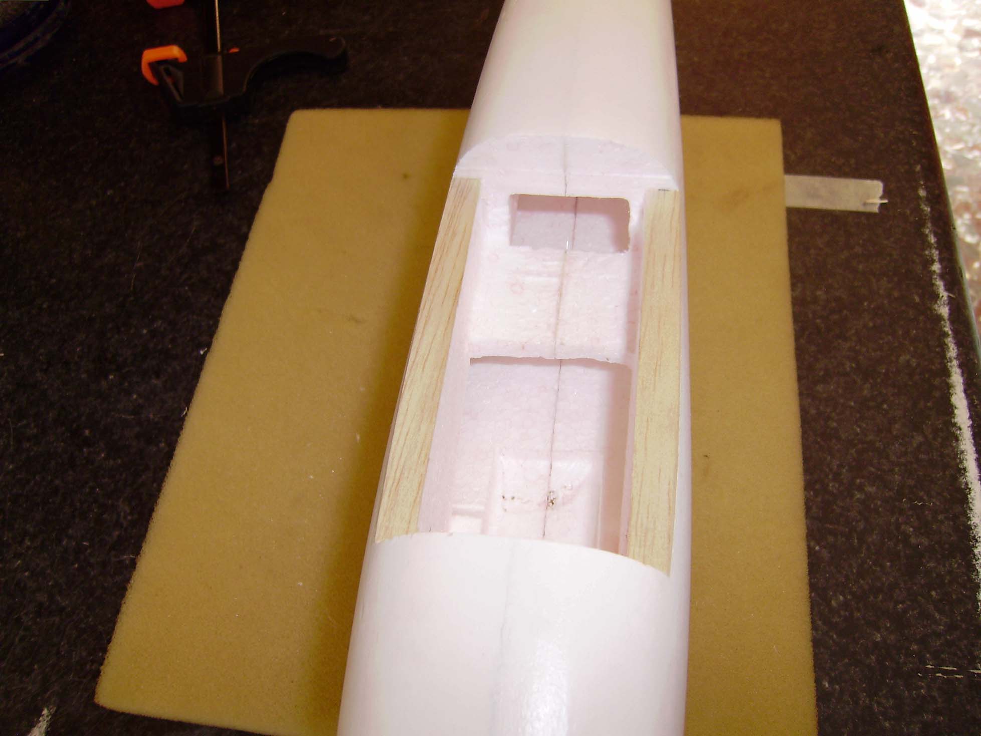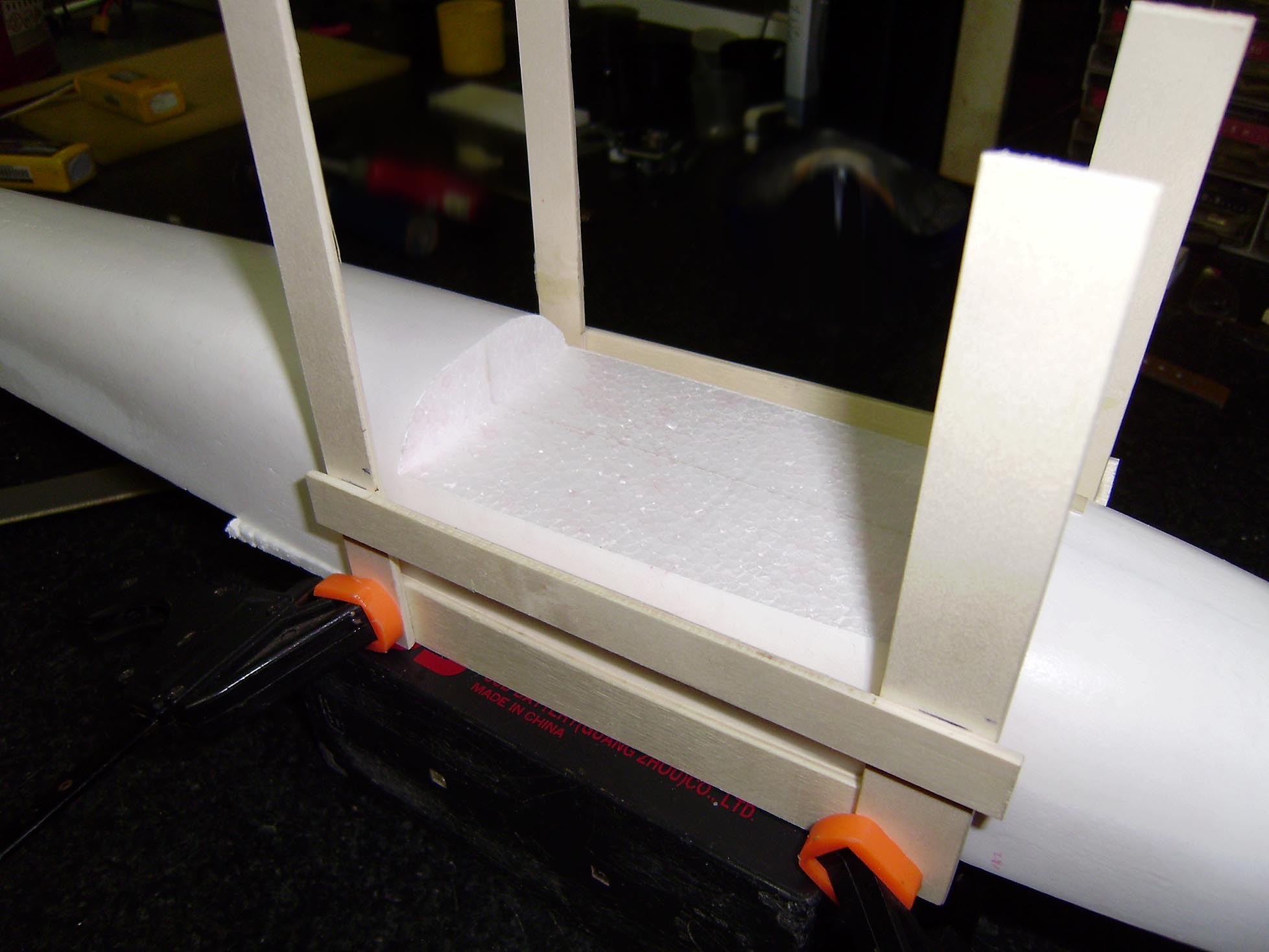Ahuecado y colocacion de la bancada del motor.Ya podemos pegarla,pero solo a la parte de arriba del fuse.