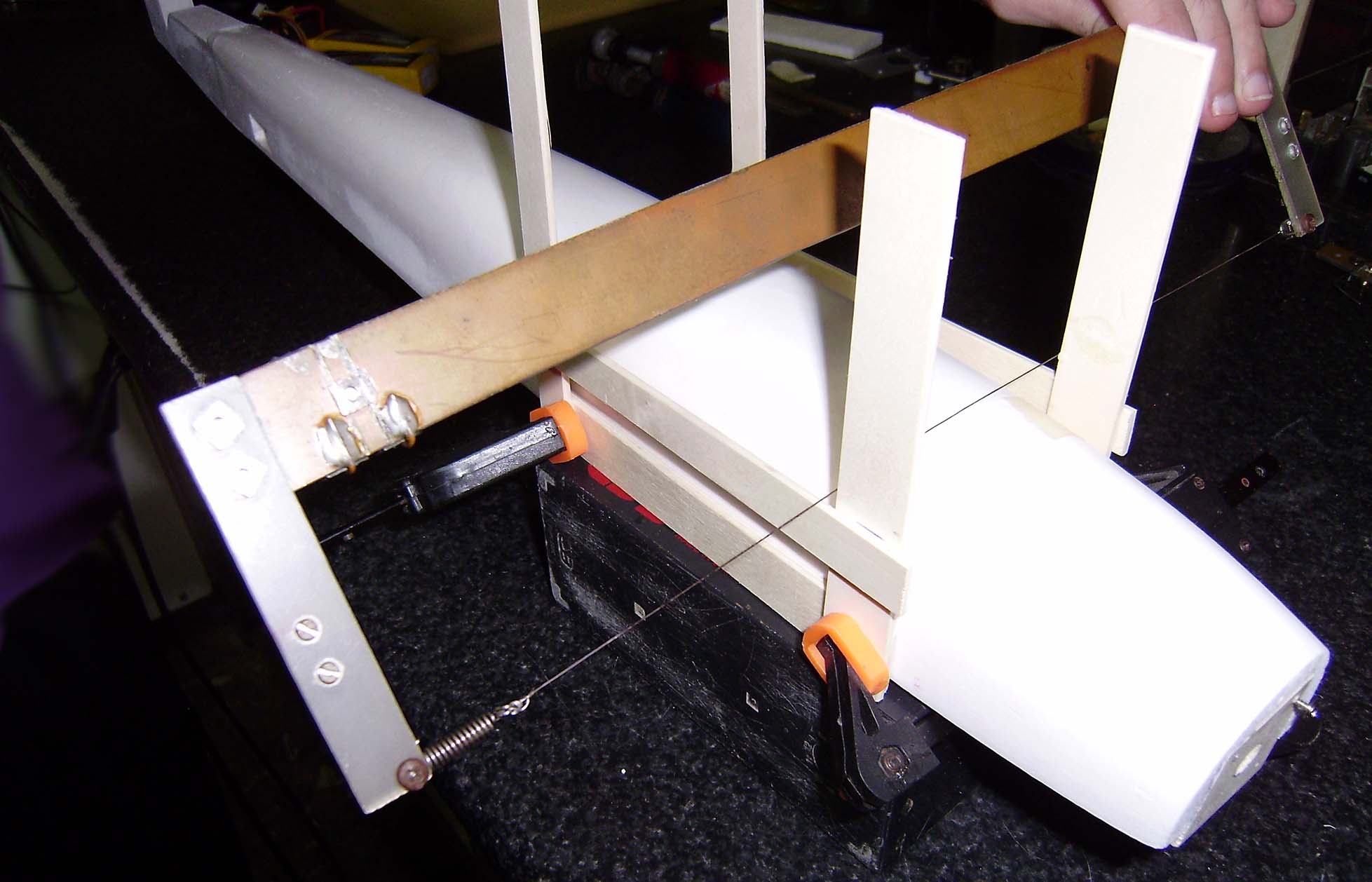 Abrir una ranura de 2 mm al lado de la bisagra mas cercana al centro del ala.