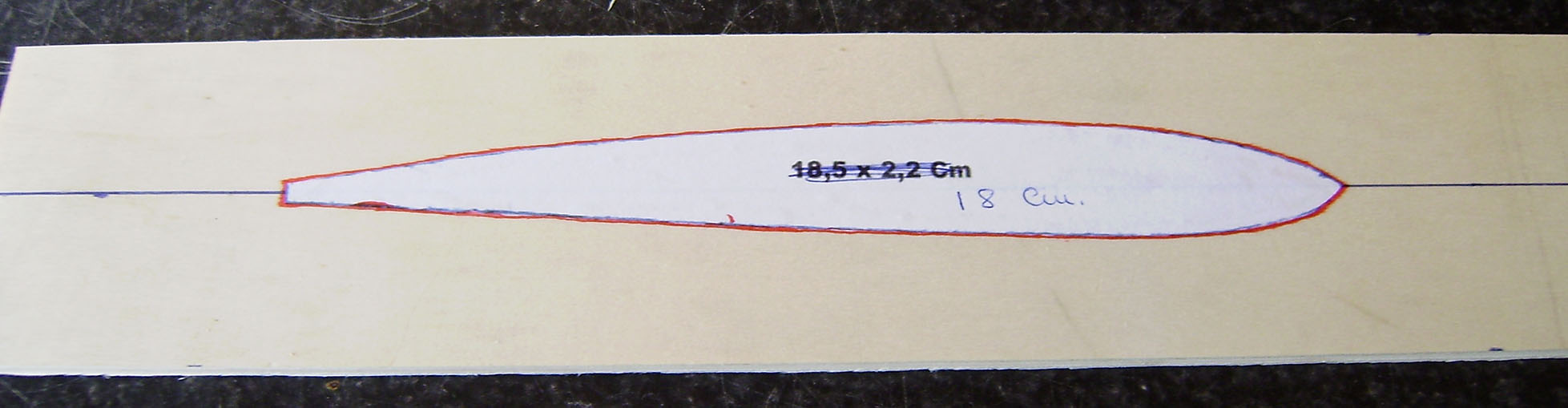 Marcamos lo que ocupara una semi-ala poniendole la plantilla encima.