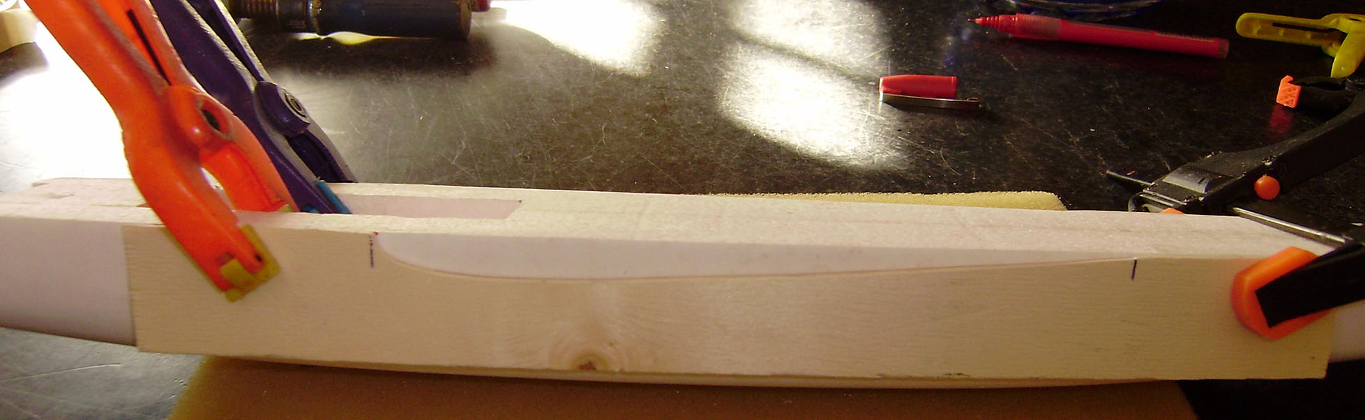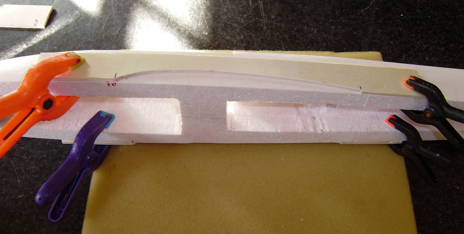 Recortar y lijar para darle forma al borde de ataque.