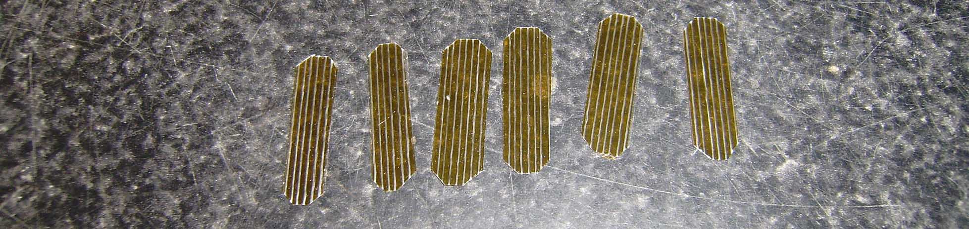 Nota;Los perfiles en madera de marqueteria tienen que cortarse en el sentido de la beta y deben terminarse con un buen lijado fino.