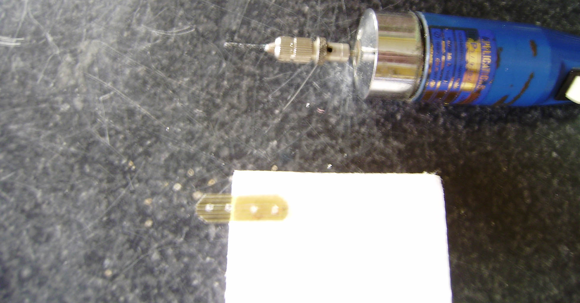 --Luego taladramos con broca de 1,5 mm en la base varios agujeritos para que el pegamento haga de las suyas.