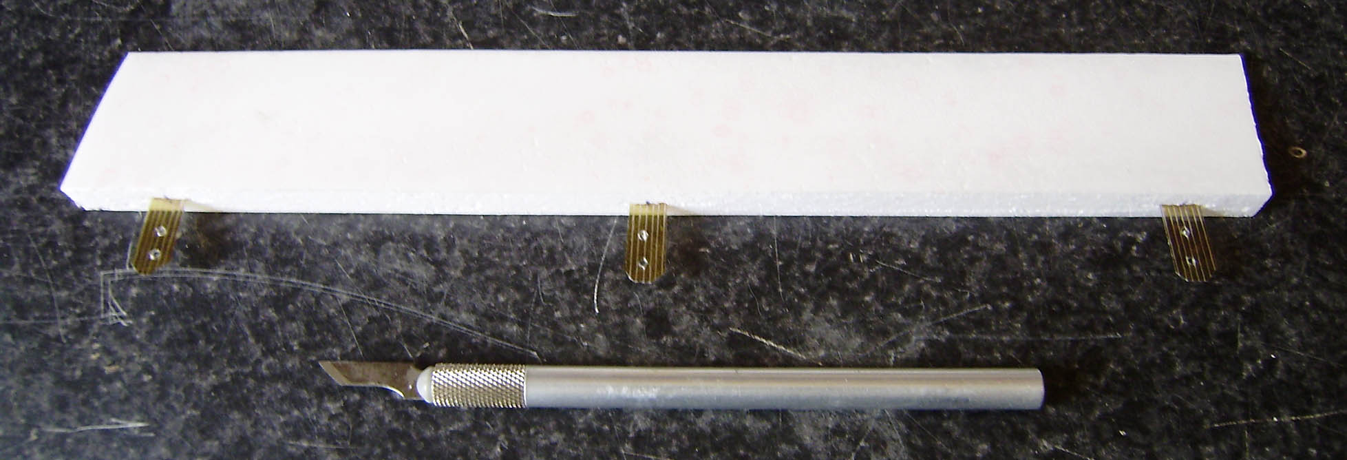 --La pegamos en el centro de la tablita marcada previamente con una linea central de guia para la linea del perfil.