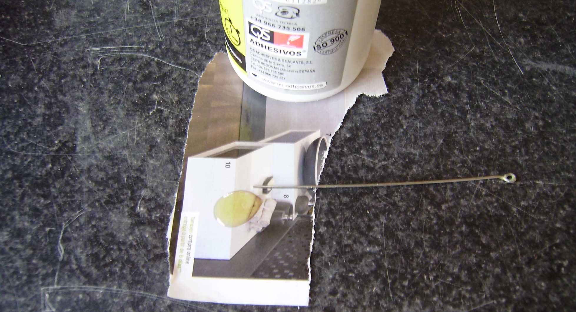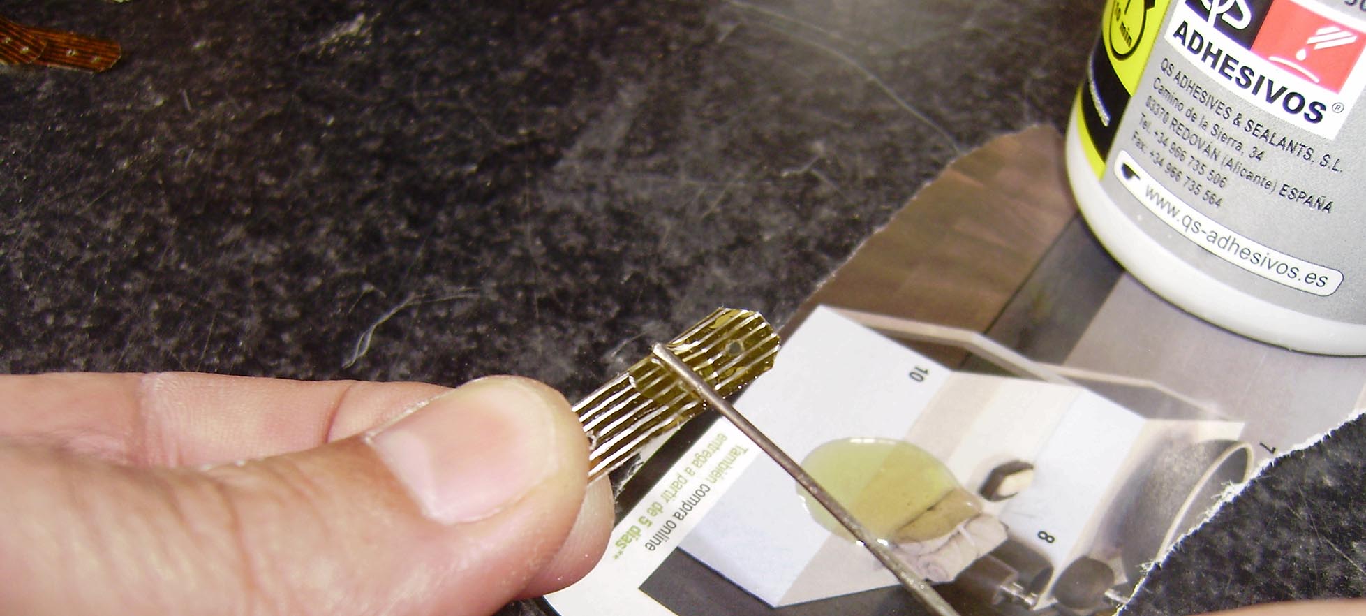 La metemos en la ranurita y limpiamos el sobrante de pegamento.