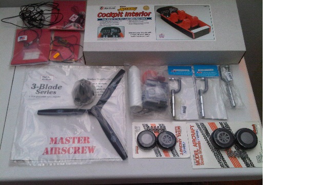 accesorios para el kit adicionales como ruedas robart ,tren retractil, luces de navegacion de la marca RAM, helice, cono , kit de cabina , los strub del tren .etc.