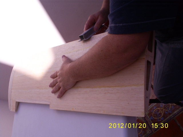 buenas tardes aprovechando mis vacaciones y puedo ahora hoy me e puesto a terminar el ala con sus partes e terminado el flap y por fin empesare el ala derecha manana dios mediante , jejejejejej no se imaginan que currazo me e tirado hoy lija , madera ,ciano ,y arre.................... cuadrando jajajajajaj ya lo veran se esta empesando a ver ya el plano izquierdo a su medida y todavia falta echarle filler , es un producto tapa grietas y desperfecto que da el armado ya se los indicare como queda despues del filler . bueno les dejo sus respetiva imagenes saludos .