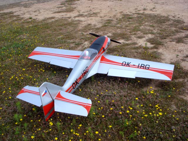 El avión mide 2100 mm de envergadura, y finalmente con el centrado en su sitio se ha quedado muy cerca de los 9 kg, para motorizarlo he empleado un ZDZ 40 RV que ya viene de algún otro avión "jubilado" anticipadamente.