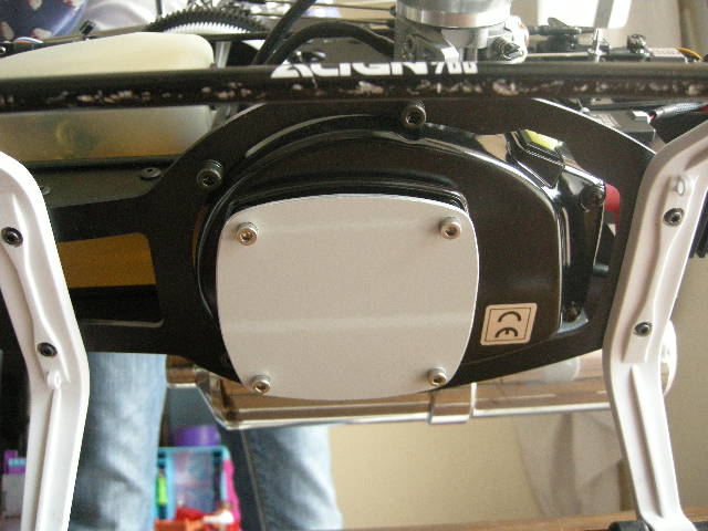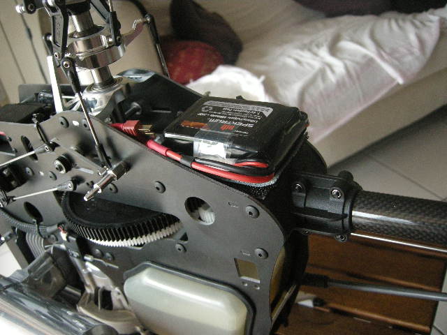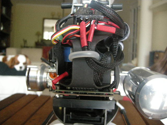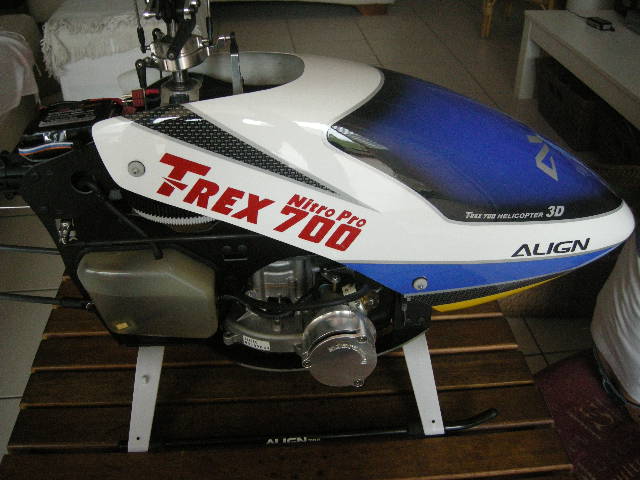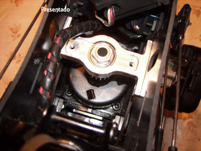 7º Montaje, la maza la montamos con ayuda de su soporte con acoplamiento cónico, pero sin la media carcasa que iría cogida al motor, lógicamente tampoco la otra. El resto como la original del Trex 700 nitro. El sistema de arranque de la parte superior quedaría anulado con este acoplamiento.