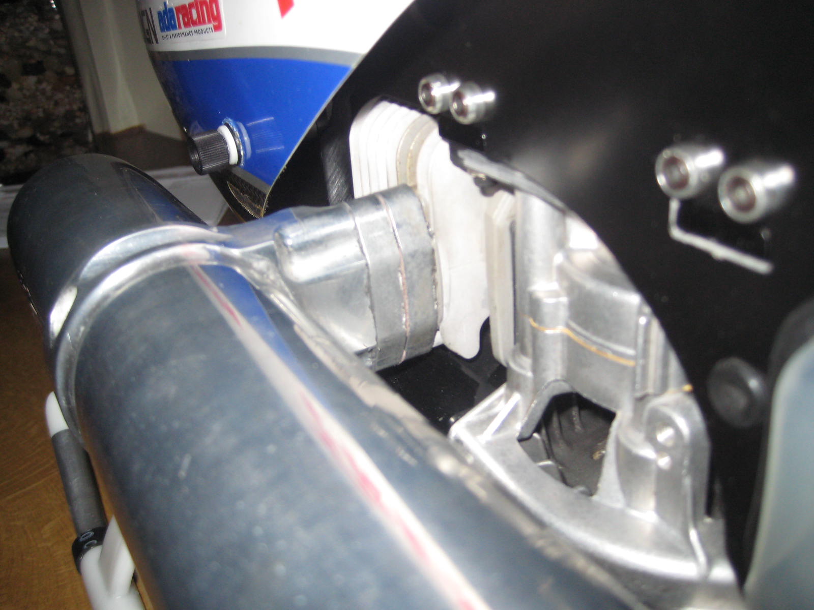 8º Al ser una campana de acero y con lengüetas, se hace difícil la instalación de los imanes para el governor. La solución que le he dado es la siguiente: Si desmontáis la carcasa inferior del motor para acceder al ventilador, podéis observar que el volante lleva incrustados dos imanes rectangulares, orientados hacia afuera uno con polo Norte y el otro con polo Sur, cuya función es la de excitar la bobina para producir la chispa necesaria. Pues nada lo único que tenemos que hacer es aprovecharlo y dirigir hacia ellos el sensor.
