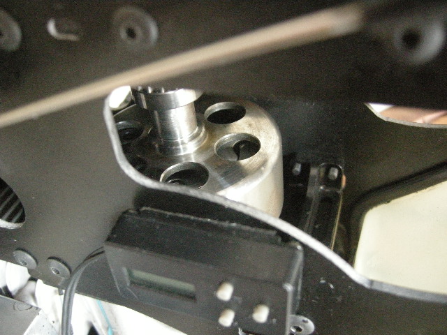 Mecanicé una campana con rosca de m10x125 y el piñón. Al montarlo vi que quedaba un poco alta respecto a la maza y intercalé un cojinete entre ambos a modo de espaciador. El resultado ha sido perfecto. La prueba estática no podia ser mejor. En cuanto lo vuele, si el resultado es satisfactorio, cuelgo las fotos del proceso.