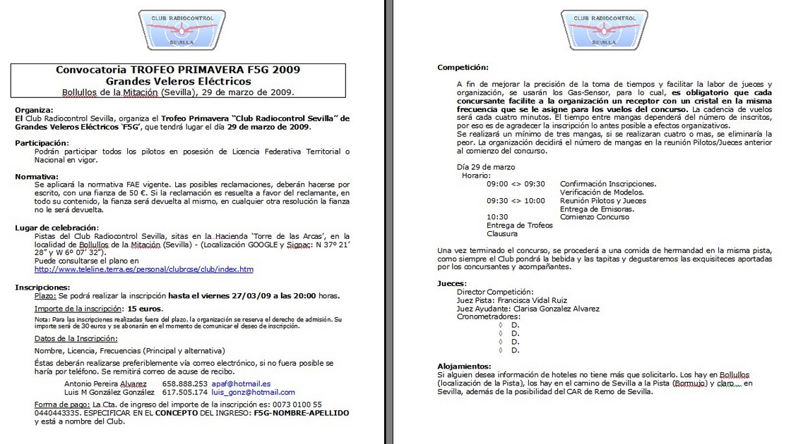 Ya se ha convocado el Trofeo Primavera de F5G a celebrar en Sevilla el próximo dia 29 de Marzo.