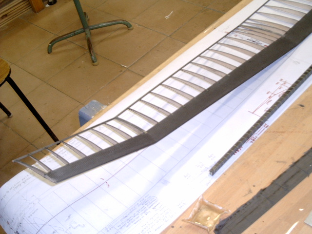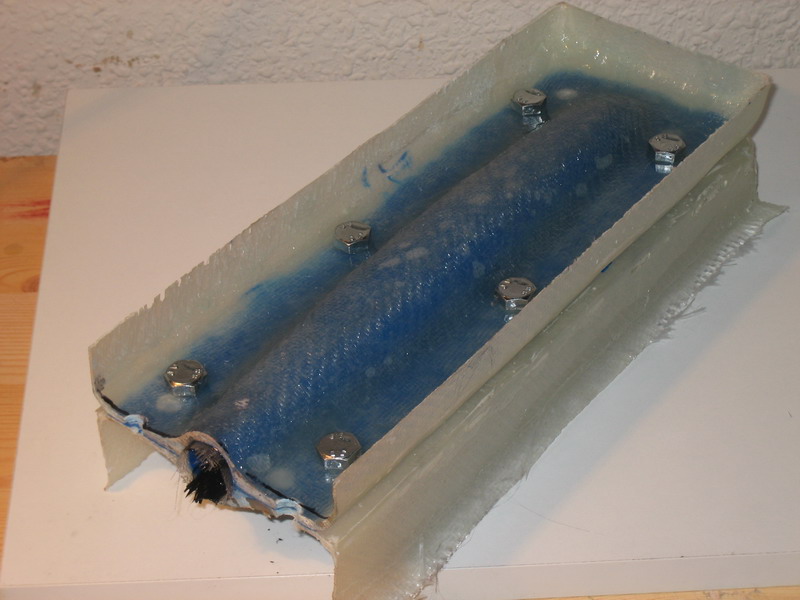 11. Aplicar el segundo tejido con resina fresca y unas tiras de carbono