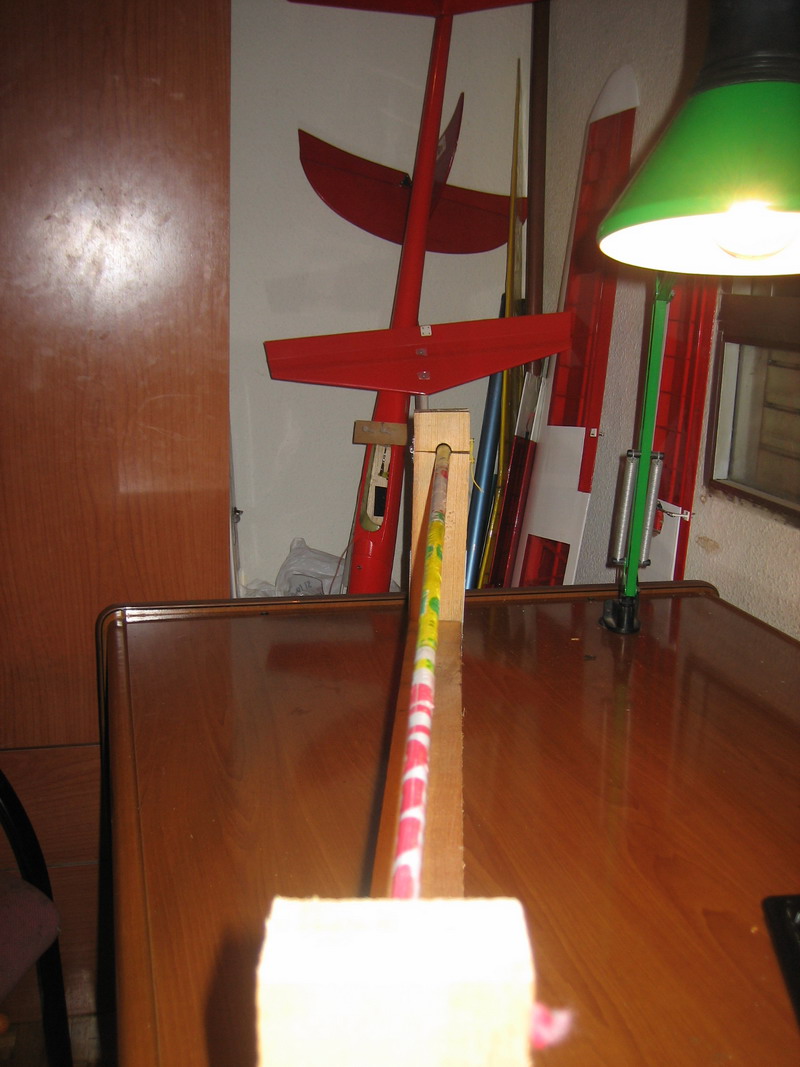 14. Por la parte trasera y con la brocha con el alargador fijar la pestaña y el tejido al molde. ¿ un poco de microbalon en el morro del fuselaje?