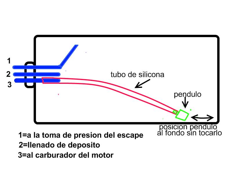 Bueno el primer problema que se me ha presentado es que he cambiado el deposito, y del antiguo salian un par de macarrones (tubos de silicona), uno que iba al motor y otro al escape, pero este nuevo trae tres, uno al motor, otro al escape y el otro supongo que es para llenarlo, pero no se donde encajarlo porque supongo que no ira colgando