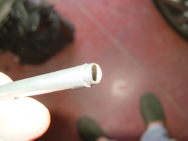 Lo de poder cortarlos o no, dependerá de la sección de tubo que hayas empleado, Si es fino, ( en torno a 0,6 mm exterior), puedes y debes acortarlos y doblar la parte final para que apunten contra la pared del vaporizador, si no, debes arrollarlos sobre si mismos, o mandarlos a un vaporizador lejano. Te pongo fotos de las tres formas. ( la de los tubos enrollados la he cogido de internet, las otras dos son mías)