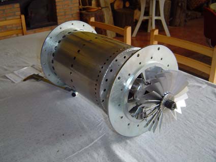 Como has construido el compresor?? en los axiales, el tema de la construcción creo qeu es aun más crítico, ya que los álabes van sujetos sólo por la raiz. A no ser que lo hayas construido a la cera perdida...
