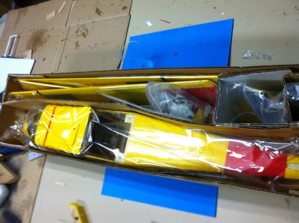 Abierta la caja , todo viene bien colocado, las piezas separadas en bolsas de plastico y hasta los herrajes individualizados tambien en bolsas mas pequeñas por grupos, segun su montaje. He de decir que sorprende tanto la calidad de la semimaqueta, como el plastico serigrafiado que la recubre como las piezas pequeñas. Viene pegadas bisagras, montados los Kwinlink etc .Incluso viene alargaderas para servos y cables para el montaje de variadores, cables en Y ...