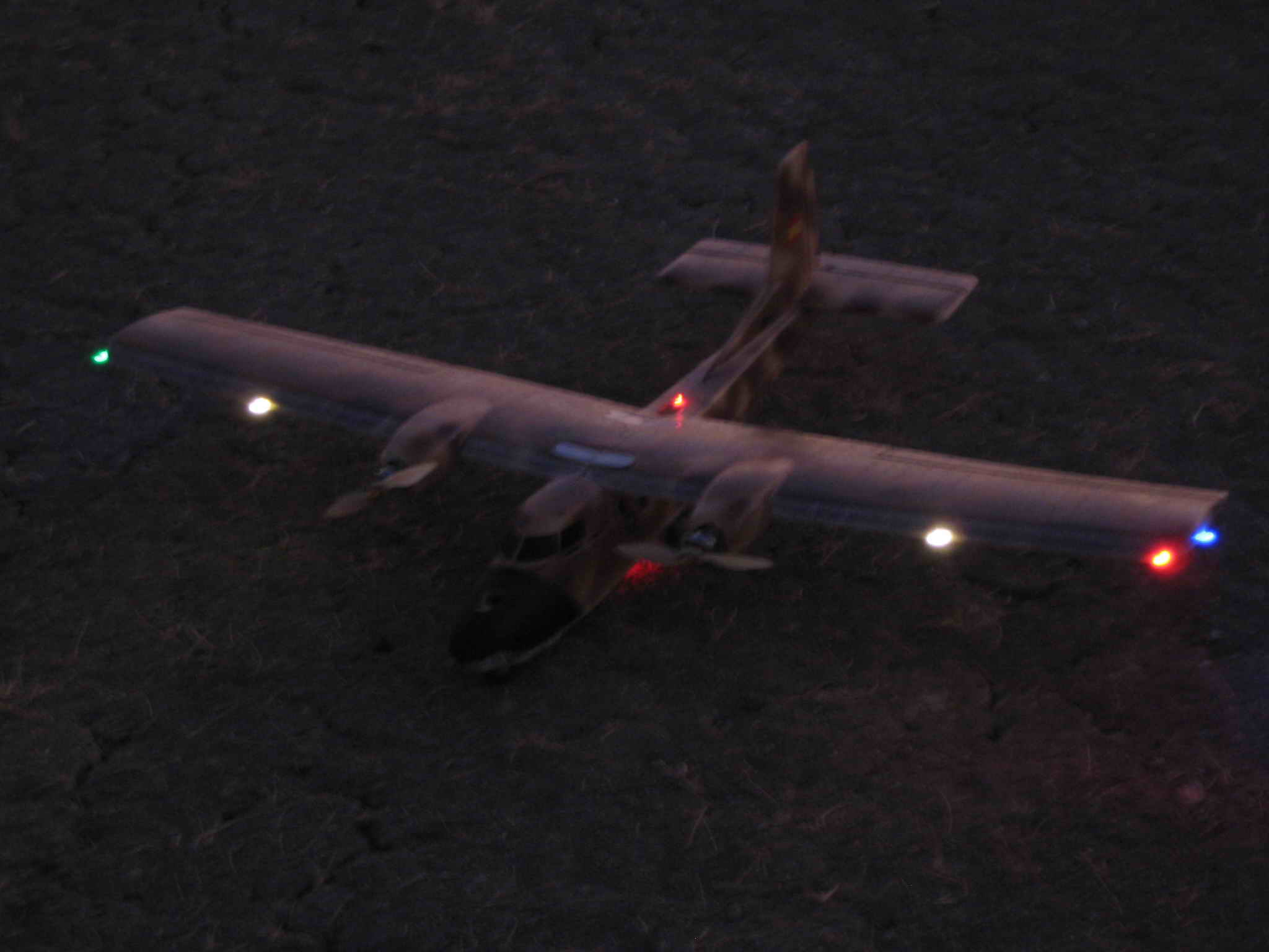 Twin Star volando al atardecer con las luces encendidas. http://es.youtube.com/watch?v=PMPzz5l7z6w . Estuvimos volando casi hasta anochecer y el avion se veia impresionante con todos los leds encendidos.