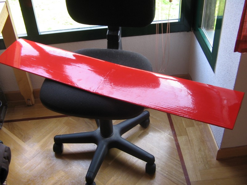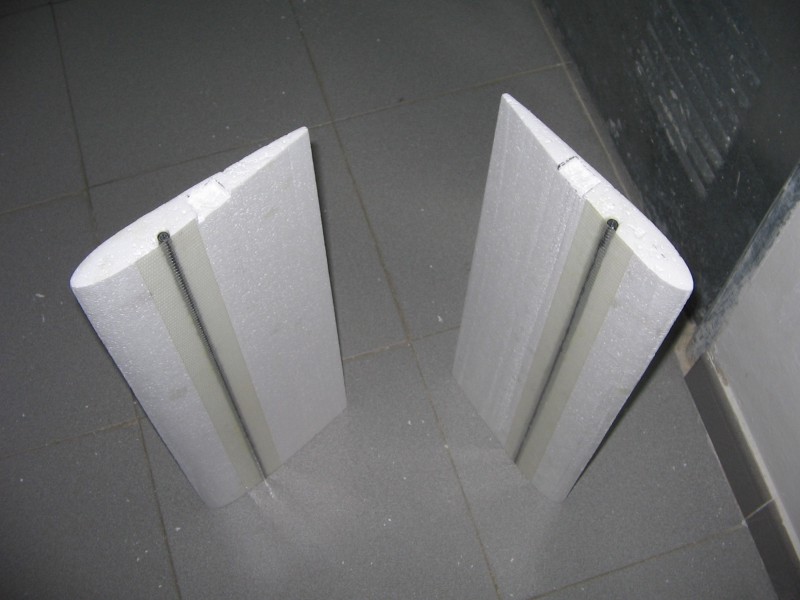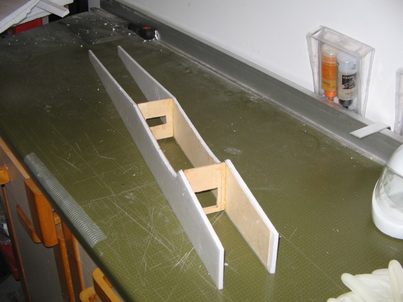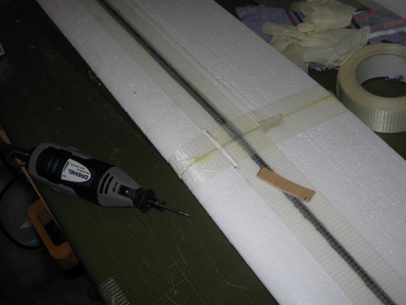 Las alas cortadas y con una varilla de carbono de 6mm . Cinta de fibra para reforzar.