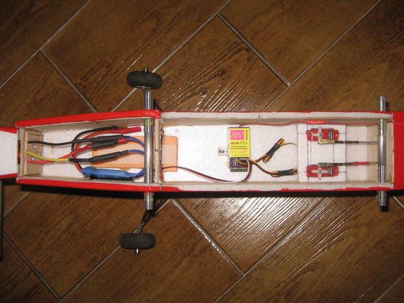 Fuselaje cortado en depron y con refuezo en contrachapado de 1mm.