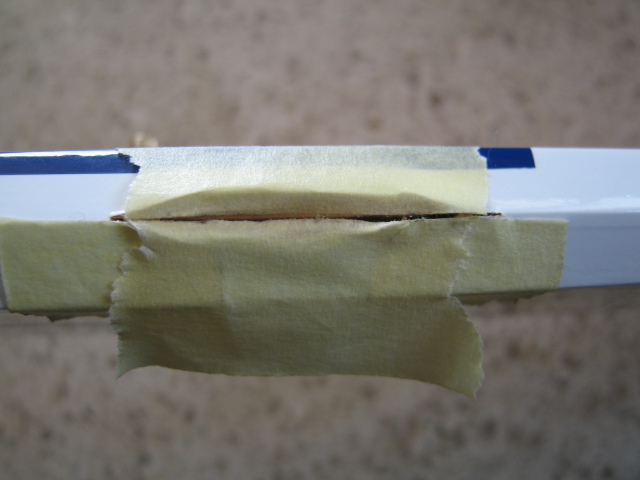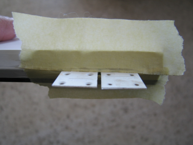 introducimos las bisagras y marcamos con unos trozos de cinta de carrocero para que al sacarlas para poner el epoxi nos queden en la misma posicion, ya que los agujeros suelen ser mas anchos con la mala consecuencia que nos traeria una bisagra descentrada a la hora de ponerla.