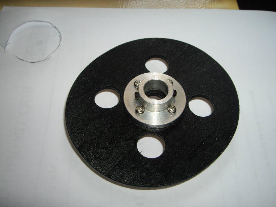 Todo bien centrado en el eje; los taladros para refrigerar la electrónica, y el central para el paso del eje, simplifican mucho el trabajo, ya que son una muy buena referencia de ajuste.-