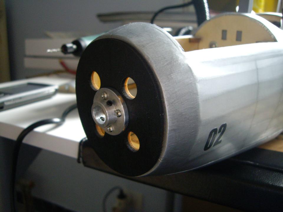 Y finalmente, así es como queda el brushless; lo que véis en la foto es parte de la documentación que tengo para replicar el motor, y el dibujo a mano alzada -escala 1:1- que he hecho para tener una referencia: lo haré de fibra y madera, con molde perdido.