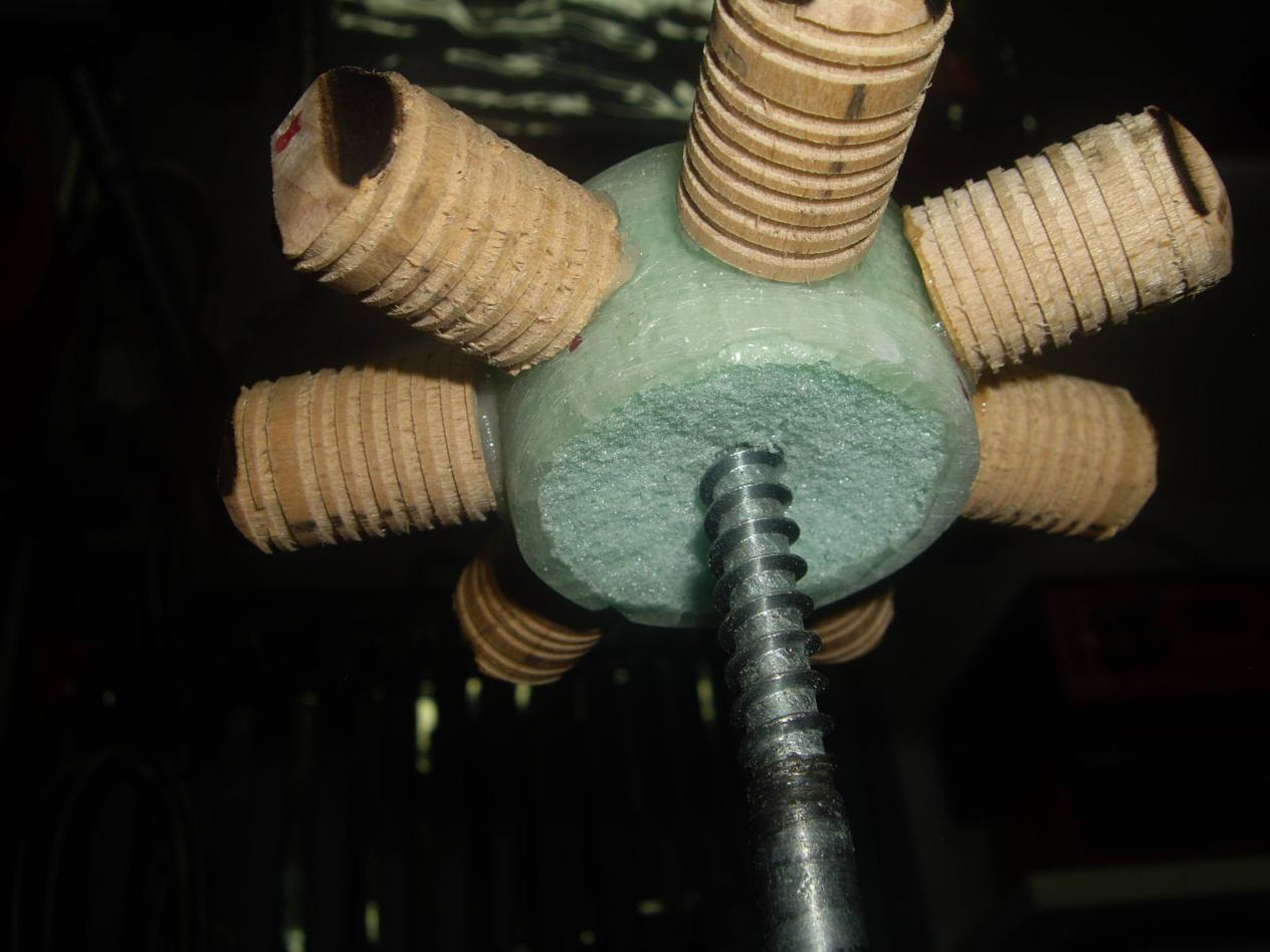 También tenéis que fijaros en que -3º- he eliminado la camisa de la transmisión, y la he liberado de la cuaderna de madera (para que evolucione libremente en su movimiento).