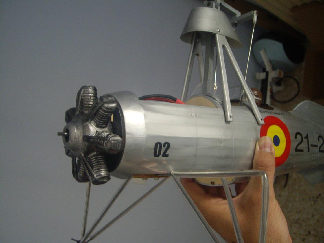 Nada mas llegar a casa he cogido el aparato y le estoy buscando un piloto en condiciones para ponerselo, con el motor no me atrevo lo he pintado con epoxi y asi le he quitado la pintilla de malo que tiene , en cuanto al brazo de servo lo doblare con un decapante