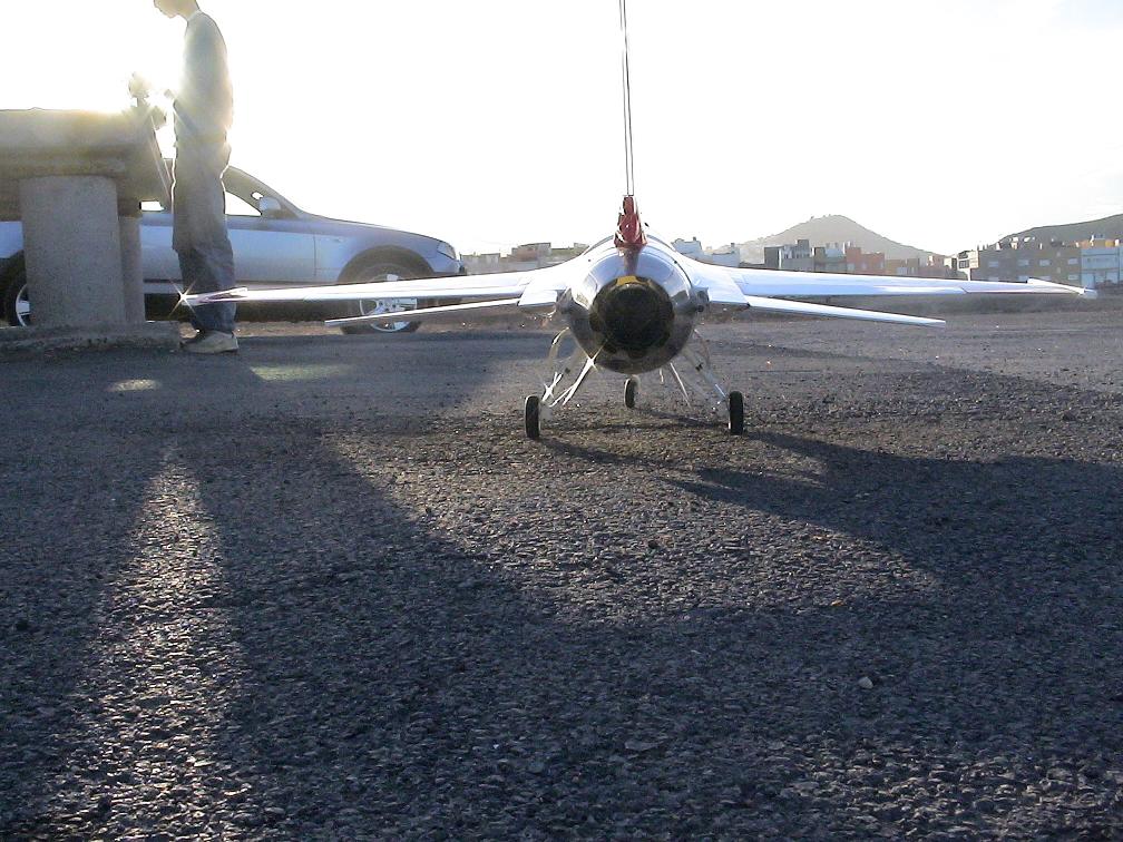 Pues os voy a poner unas fotos de un F 16 de 90 cm con una EDF de 64 mm, alimentado con una batería EVO 20 14,8 v 2150 Mah 20C.