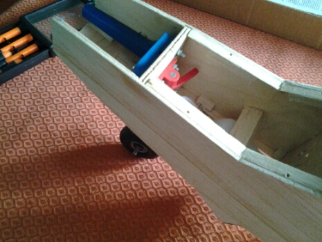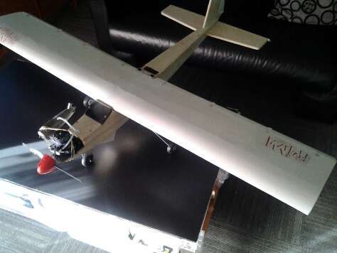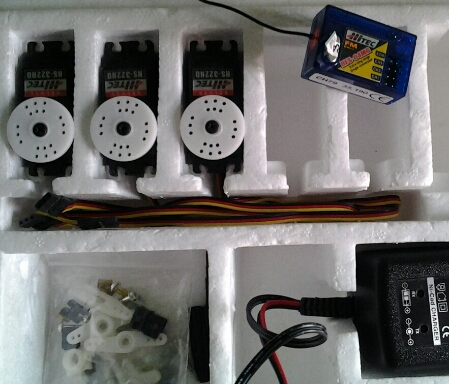 el avión lleva 5 servos 2 en ala alta 1 para subir bajar 1 para ir de lado y 1 para el motor.
