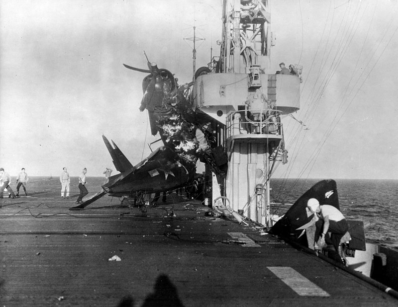 yo he visto un video de un corsair que al aterrizar en un portaaviones se le soltó la bomba y ves como va botando hasta que en un bote cae de punta y explota.