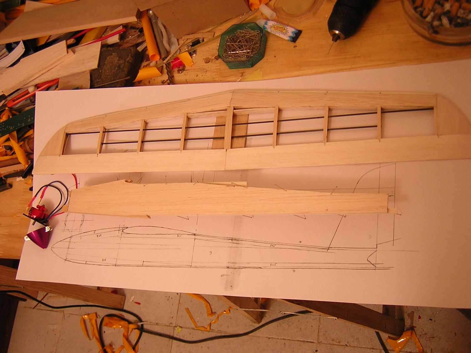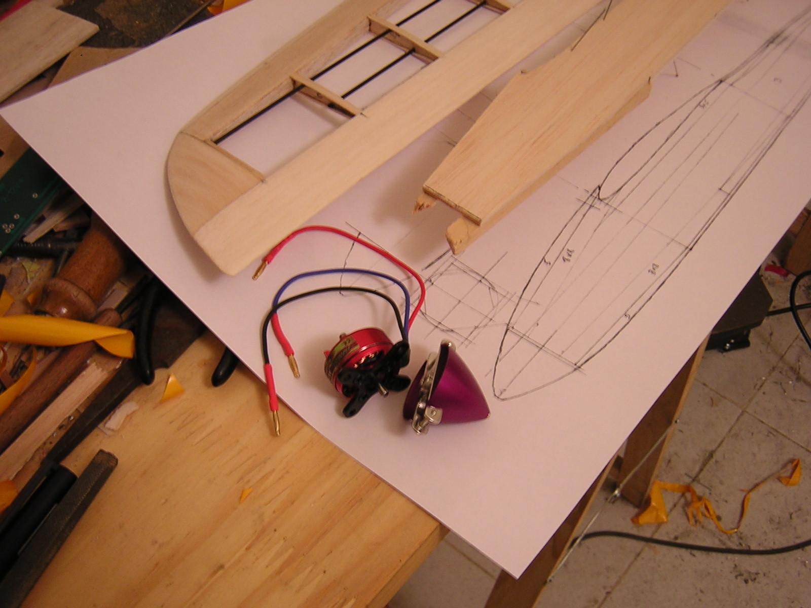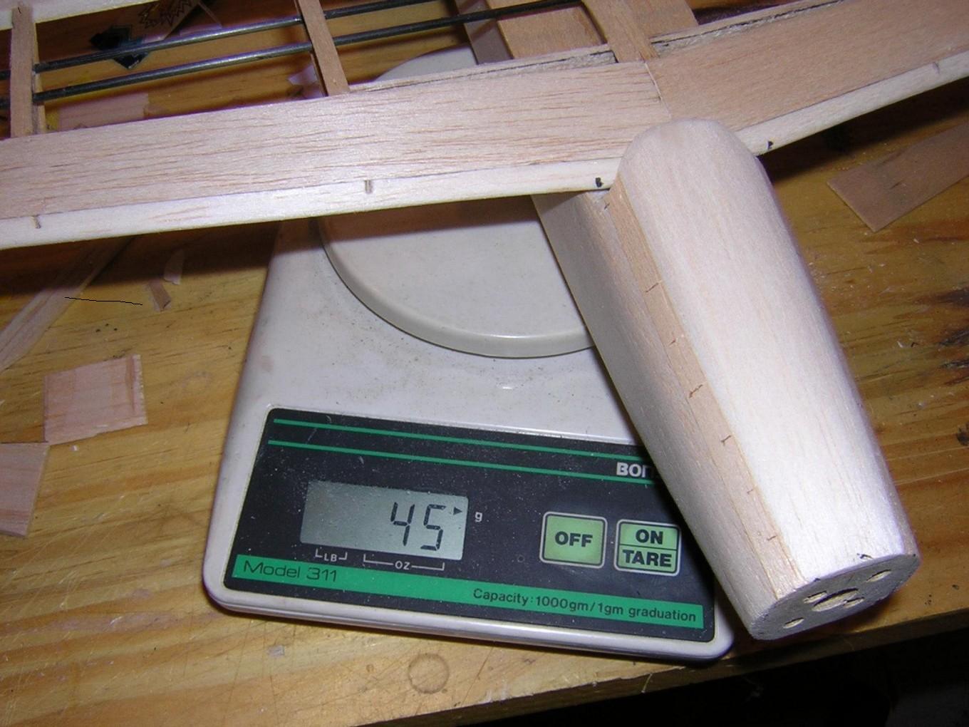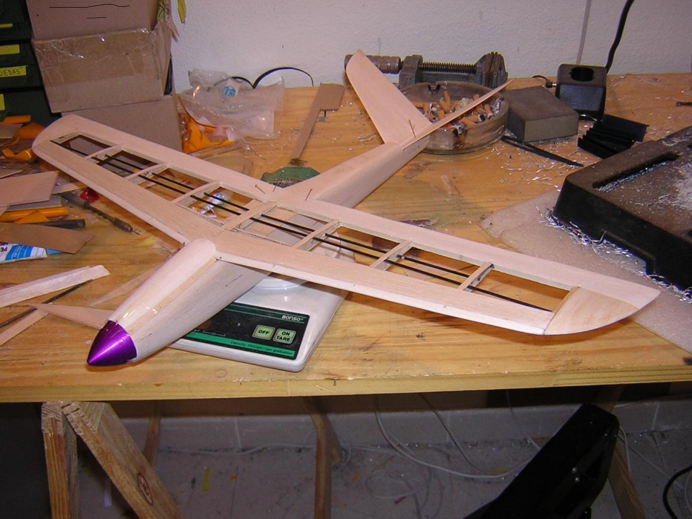 de peso esta quedando muy bien. Habrá que ver donde se ponen las baterías y la radio para que quede equilibrado porque casi pesa mas el motor que el avión.