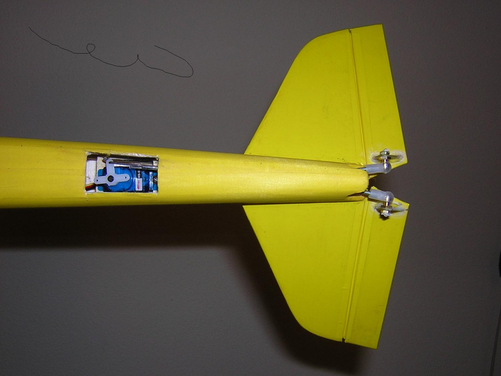 El servo de cola esta puesto. Cerca de la cola para nivelar el avión y con rotulas en las transmisiones, los que decian que en pequeño no entraba.