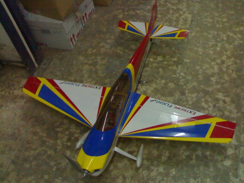 Hoy lo he volado por primera vez, muy bien, la verdad que es muy dócil, de motor no va sobrado, pero para las figuras que yo hago muy bien, no lo he tenido que trimar, supongo que cuando empiece a hacer rizos más grandes y otras figuras tendré que trimarlo más fino, pero para el vuelo de hoy, cortito , algunos toneles y rizo, con dos aterrizajes, buenisimo aterrizando, entra muy lento y apoya sobre las tres ruedas, da confianza. Lo recomiendo como avión acrobatico clásico.