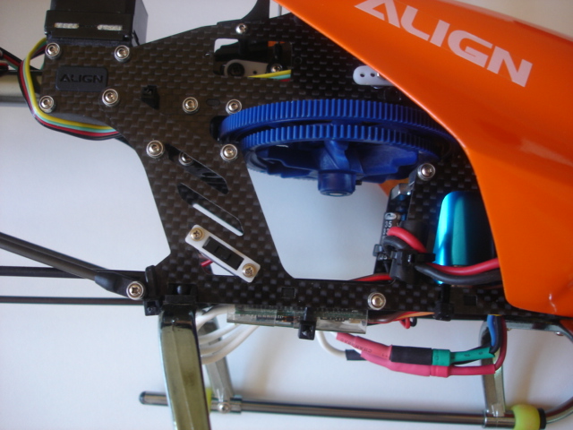 En el caso de instalarlo en un T-Rex 450 ,lo instalado en un lateral alojado en una de las ranuras del chasis , aquí dejo una