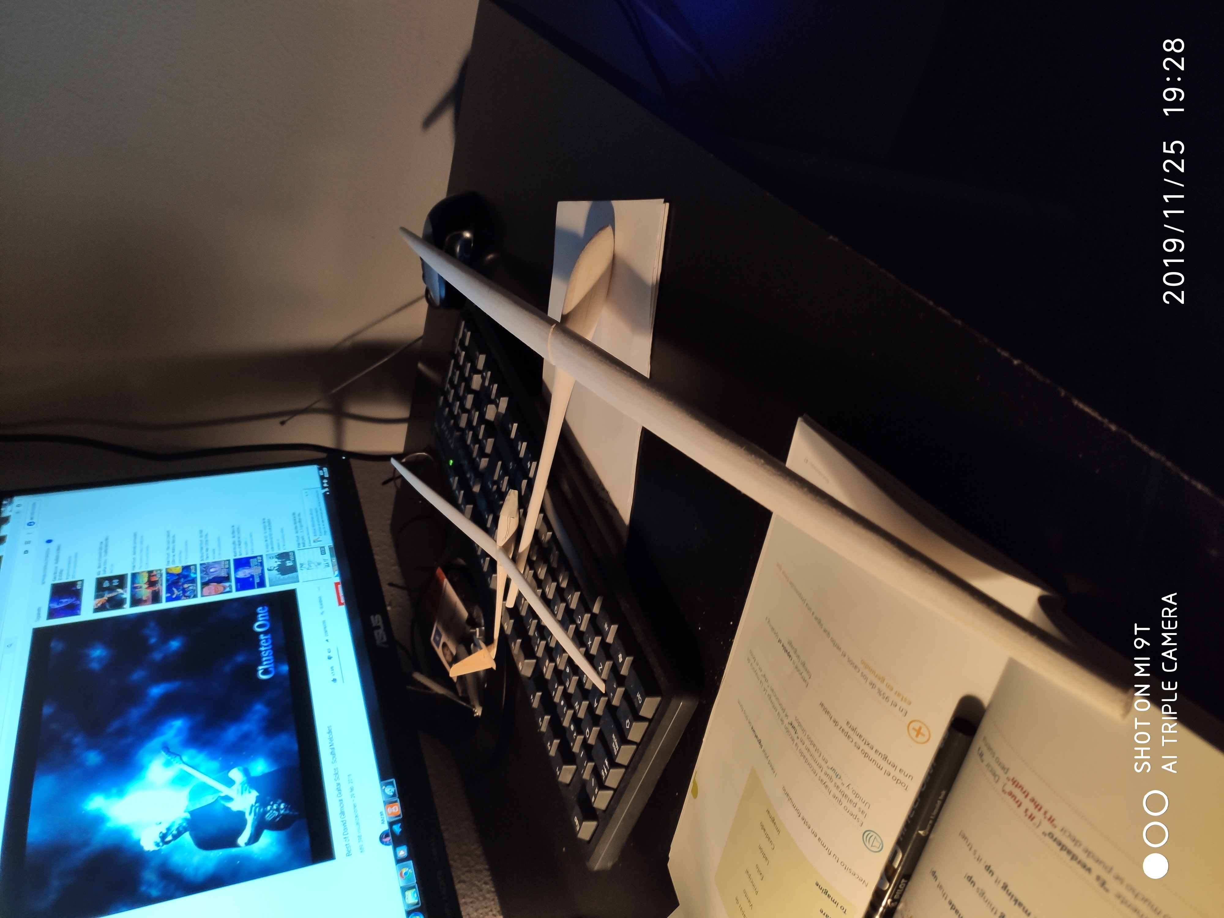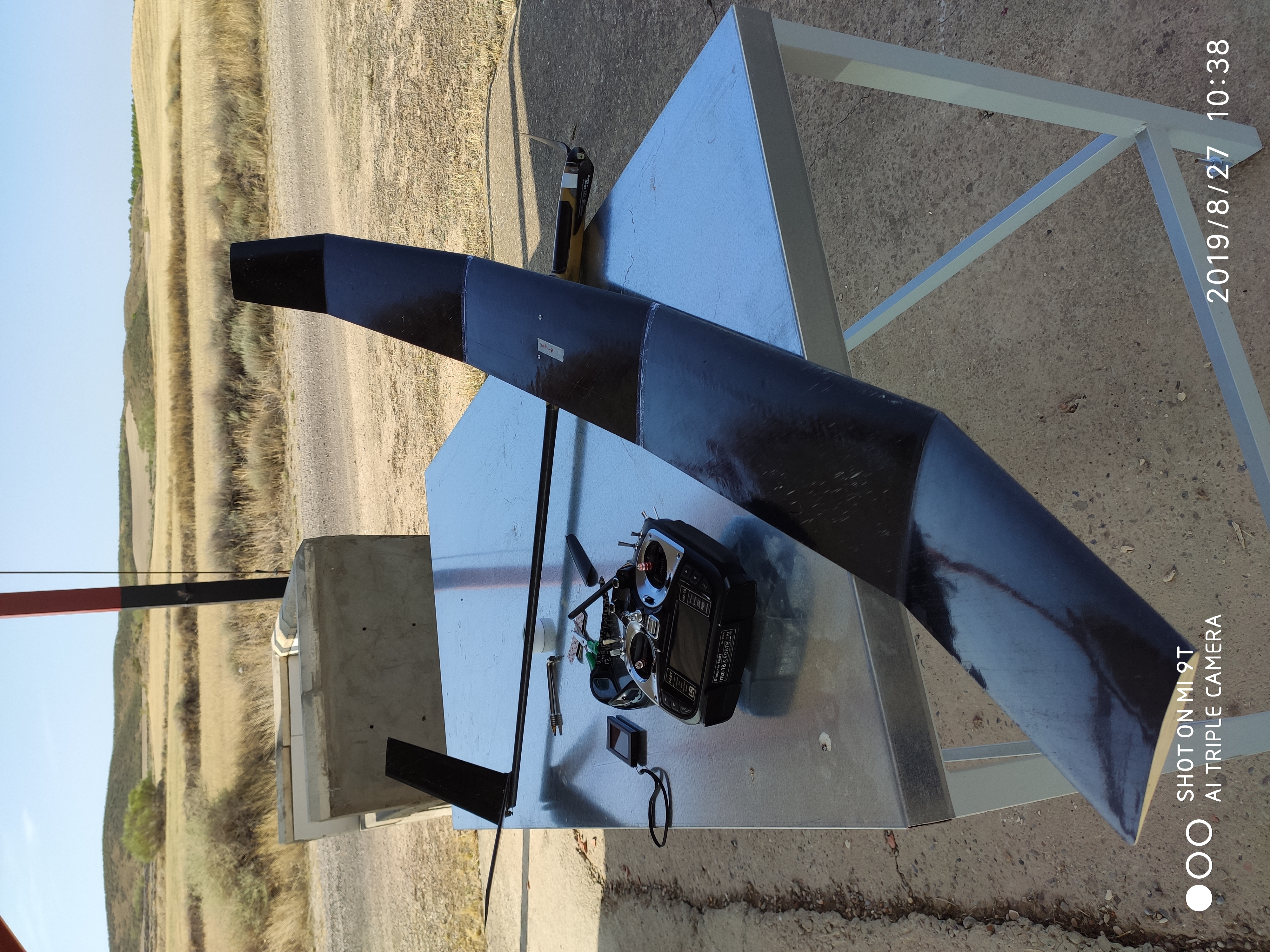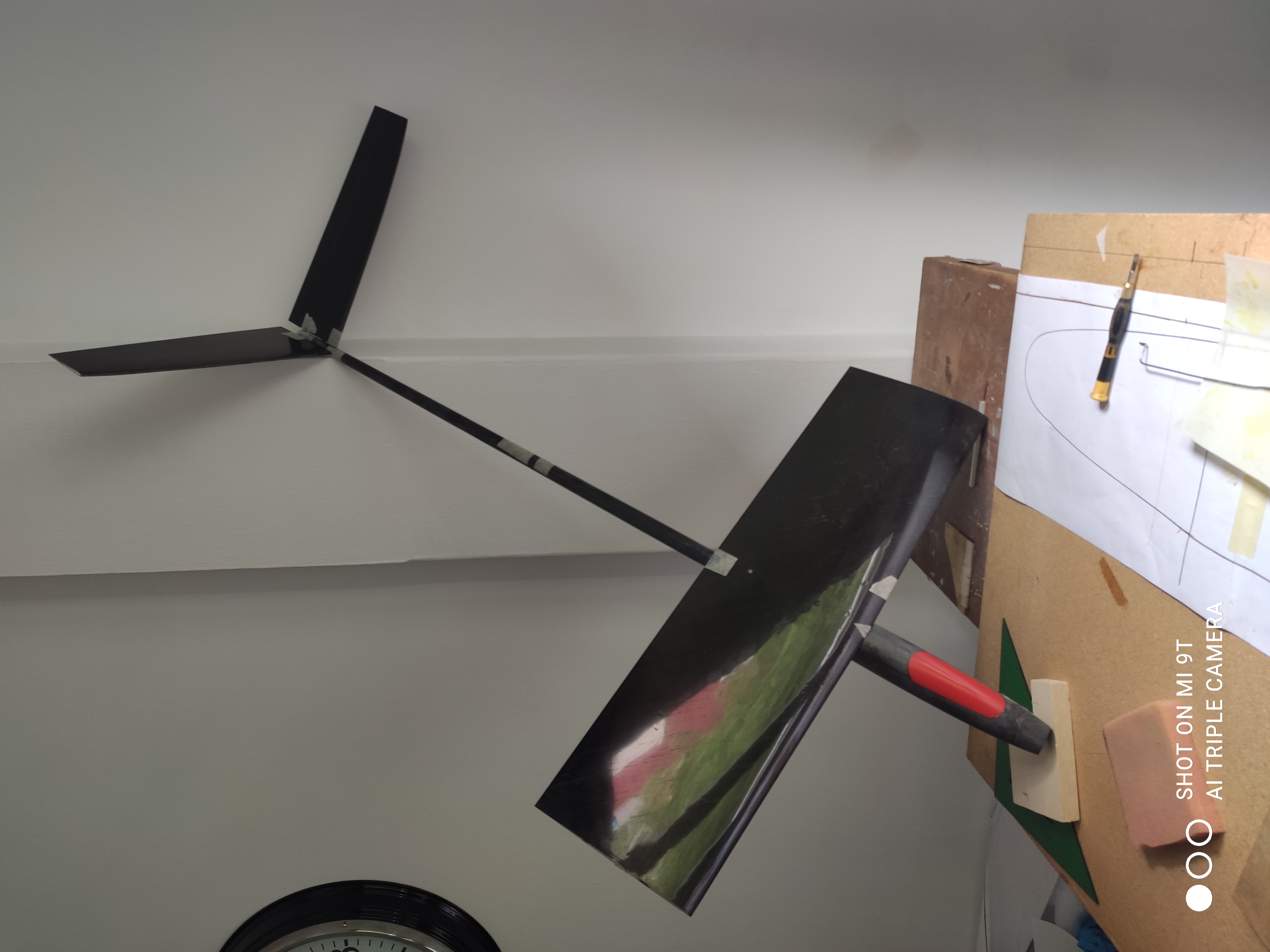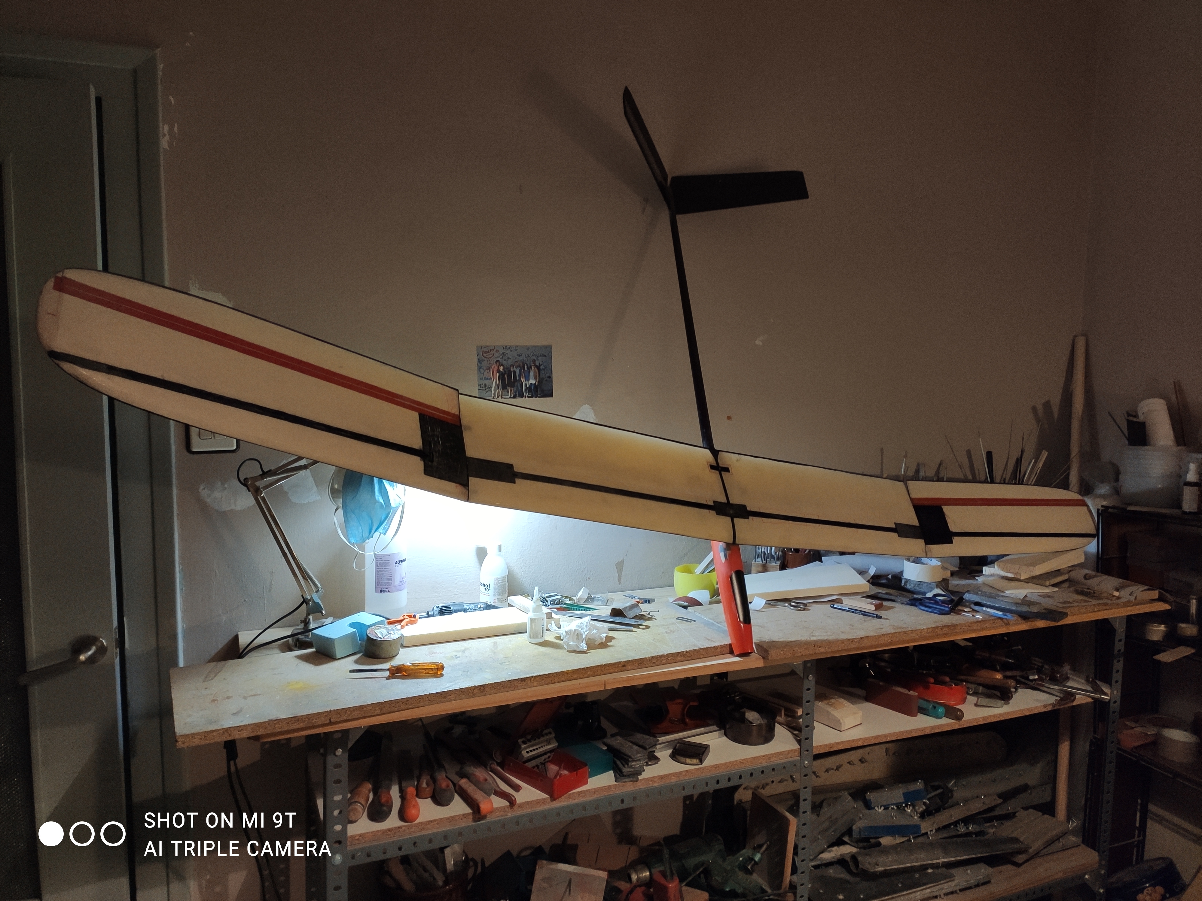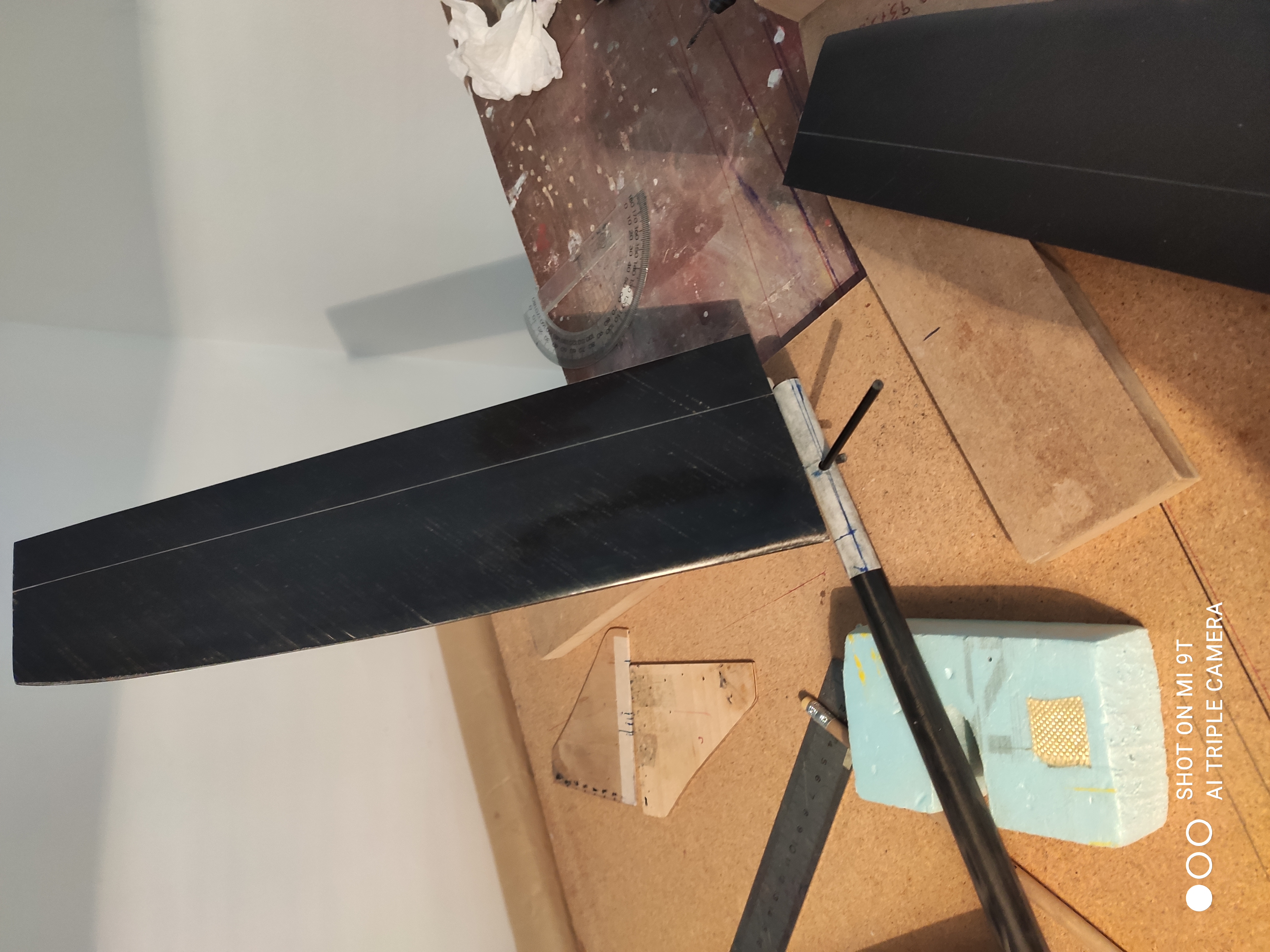 Está hecho con fibra gruesa de retales que vas guardando, lo malo es que pesa casi 900 gr, pero vuela genial.