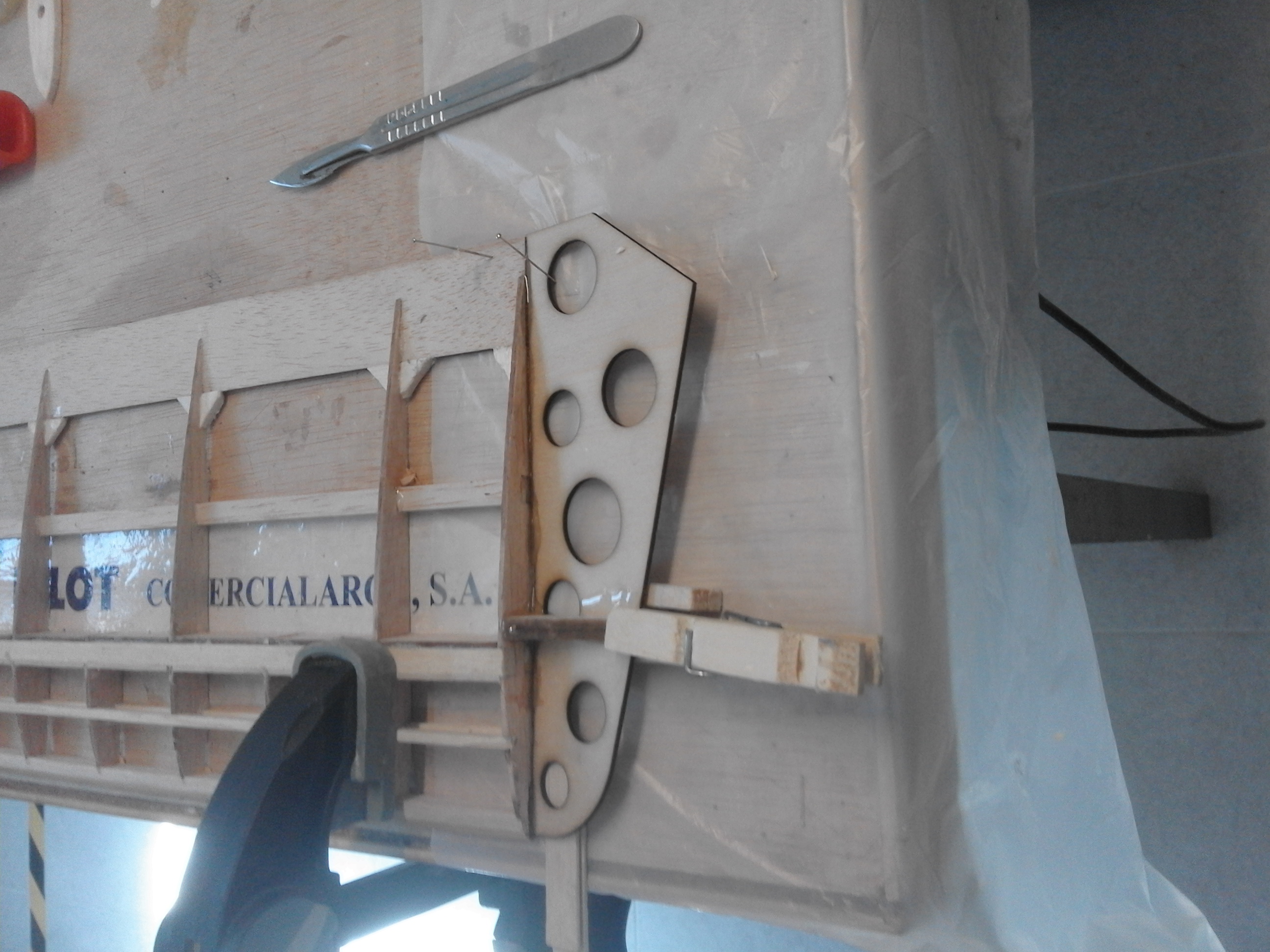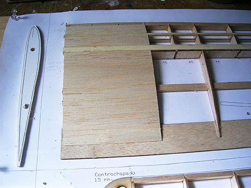 Asi pues, los laterales del fuselaje de la versión definitiva seran de balsa de 3 mm y las cuadernas de contrachapado de 1,5 o 2 mm. Estas rectificaciones son habituales cuando se desarrollarán proyectos nuevos y las mejoras dan lugar a un producto mas maduro.