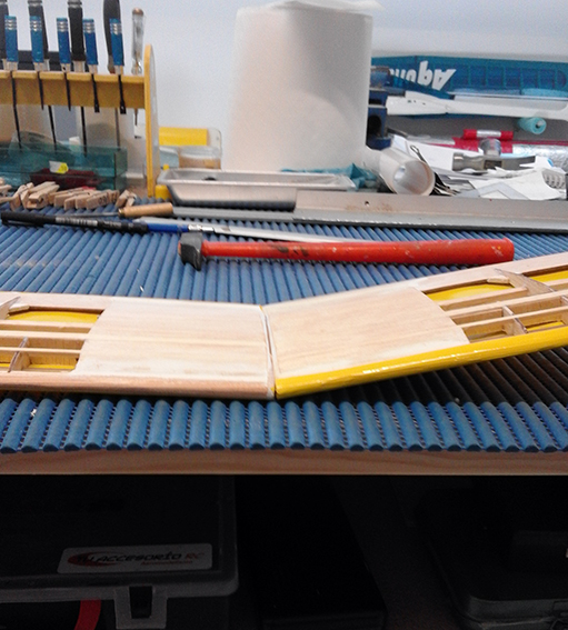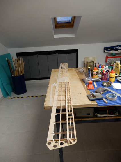 Esta quedando muy bien, el ala resulta bastante ligera y hace pensar que alcanzaremos el objetivo de no sobrepasar los 800gr.