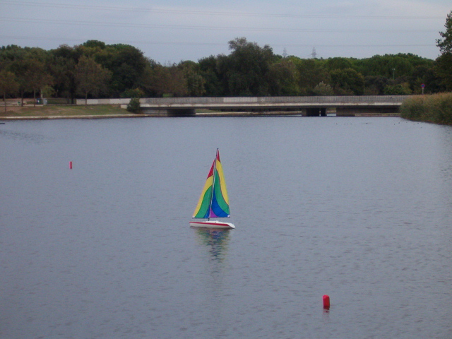 Ya lo he navegado en el Alamillo y me va muy bien, pero si cuento el extreno es para morirse. El problemilla es que le quiero hacerle la barandilla que tienen los barcos en los bordes, que es como de alambre para no caerse, pero no se me ocurre nada.