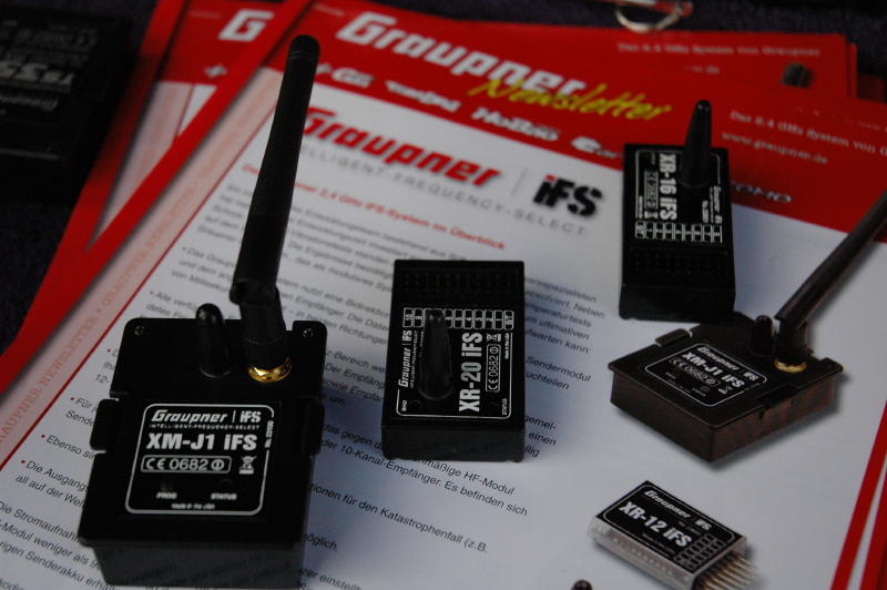 Os adjunto fotografías de los receptores 2.4 de Graupner. Como veréis no usan antenas en dos direcciones. El sistema que utiliza Graupner es bi direccional. Esto significa que bien la emisora o el receptor pueden percibir una interferencia y se informan el uno al otro para cambiar a la frecuencia libre. Con respecto a los Velero se puede hacer un orificio del tamaño del diámetro de la antena. Yo personalmente voy a esperar por lo menos un año.