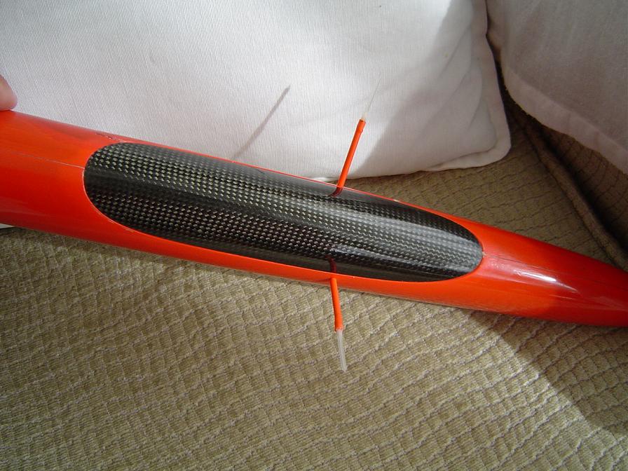 En las instrucciones ya se hace referencia a veleros con fuselajes de carbono y se plantea como solución sacar las antenas por un par de orificios para evitar el apantallamiento que produce el carbono con cuidado de que la parte no asilada (zona clara de las antenas) no toque el carbono y sin dejar pegadas las antenas al fuse, asi lo tengo puesto y como he dicho antes ningún problema.