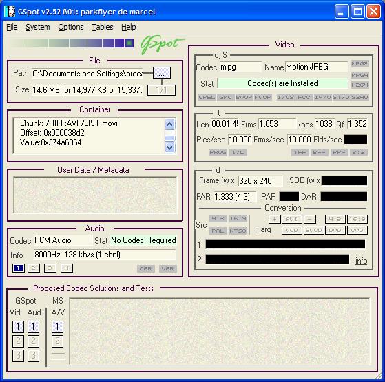 Os recomiendo el programa GSPOT (ver pantallazo) para saber que codec utiliza un determinado video. Te dice si el PC tiene el codec adecuado o en su defecto propone soluciones (tbien da info del video). http://www.divxhouse.com/util/util.php