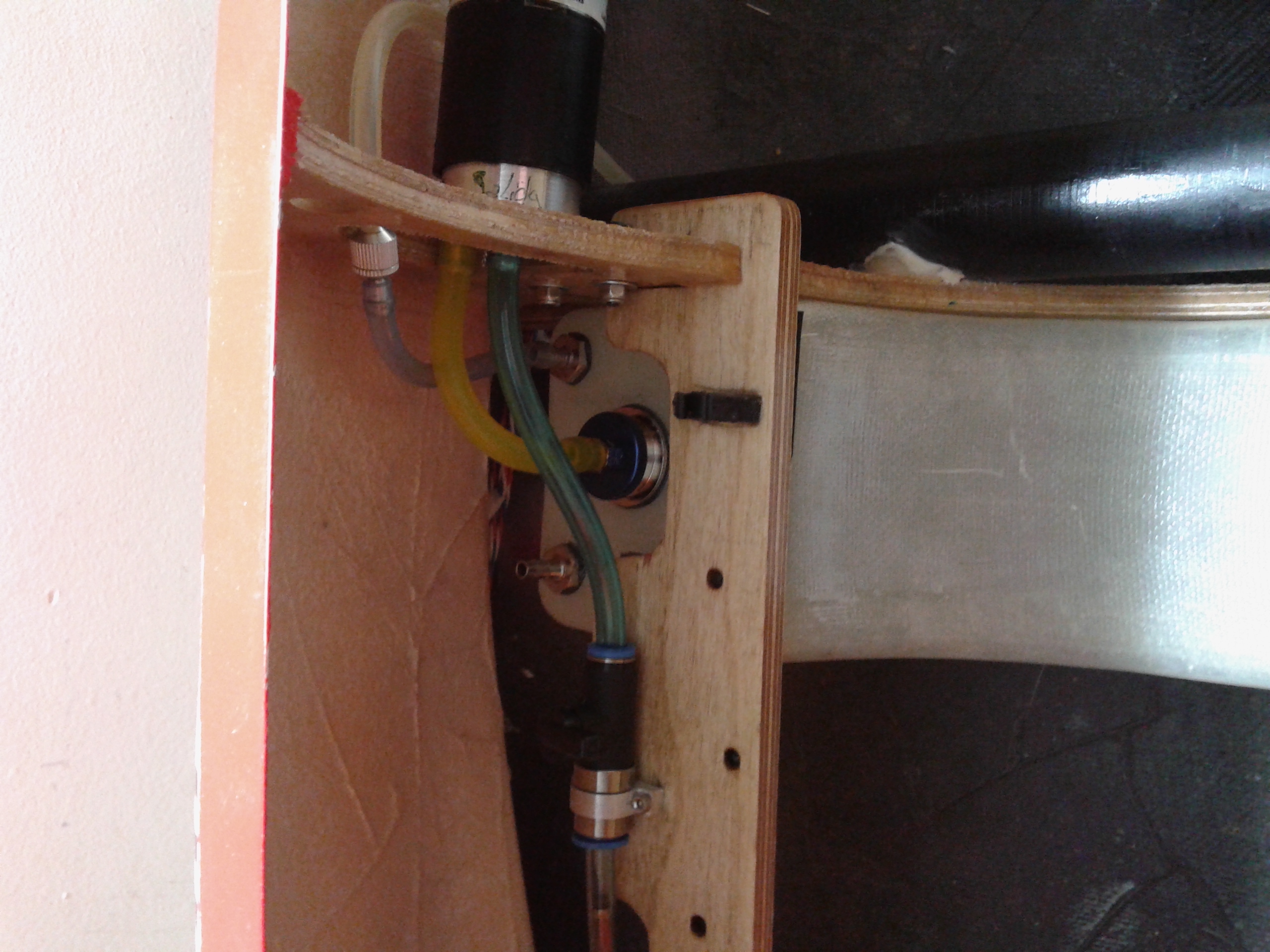 En tercer lugar he cambiado el sistema de humo el cual lo he colocado al lado del motor, trasladando la bomba humo de la plataforma a la cuaderna y haciendo un depósito especial para el humo que lo he colocado debajo del motor y de contenido aproximado de 1 litro.